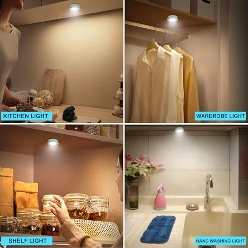 Menu 1. We require immediate payment. 2. We currently accept payment via eBay managed payments only. 3. Once payment is cleared, we will dispatch your shipment within 1-3 business days. Please refer to the "Shipping" tab for more information regarding shipping speed to your destination. LED Puck Lights, Battery Operated, Tap Light, Stick on Lights, Under Cabinet Lighting, Closets, Shelf Lights,Garage and More,3-Pack, Silver (9 AAA Batteries are Included) Product description 【Simple operation】 : Just touch the center lens to turn on and off the hockey lights without the need for a search button. 【Energy Saving and Environmental protection】 : Offering 60 lumens of ultra-bright, 3000K soft luminous led, Puck lights provide a stylish and modern lighting solution for a variety of indoor and outdoor applications while consuming minimal energy 【Easy to install】: You can quickly install the undercabinet light using tape or screws (including tape and screws). Easily install counter lights on any smooth surface such as kitchen cabinets, bookcases, closets, hallways, under tables, display cases, bookshelves, closets, pantries, etc. 【 Battery powered 】 : Each tap lamp is powered by 3 AAA batteries (including), and no plug or wire is required. Suitable for small areas w wiring is not easy to install. 3 LED Puck book light ( 9 AAA Battery included) ,3 Double-sided tapes, 6 Mounting screws, 1 Instruction Manual PLEASE MESSAGE US IF YOU HAVE ANY OTHER QUESTIONS, AND MANY THANKS FOR READING ALL OF THIS. Copyright ©#. All Rights Reserved.