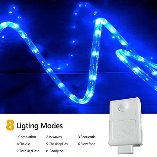 Return Policy Fast Delivery Trusted seller 200ft LED Rope Lights Outdoor, 1440 LED Flexible Tube Lights with 8 Modes, Waterproof LED Rope Lighting for Outside, Garden, Patio, Bedroom, Party, Pool, Fences, Indoor Outdoor Decoration (Blue) Product Description Flexible Rope Lights: This LED rope lights use high quality clean tube to protect the fairy lights, which can be bent into various shapes, easy to recycle the next use. 200ft Super long enough to meet your creative lighting decor needs 8 Modes & Safe to Use: The rope lights for outside have 8 different Modes: Combination, In waves, Sequential, Slo-glo, Chg/Flash, Slow fade, Twinkle/Flash, Steady on. Press the button on the plug to change the mode. Just enjoy your life with these tube lights, Comes with screws and clamps to fix the led rope lights when hang on the ceiling or wrap around the trees and pillars. Two built-in fuses in the power plug as short circuit protection, more reassuring and reliable. Auto Timer & Memory Function: Our outdoor rope lights also come with a timer function, The timer keeps 6 hours On and 18 hours Off once activated. Build in Memory chip save your last modes setting and no need to reset mode every day. IP 65 Waterproof: The outdoor rope lighting is covered with a transparent and thick round PVC tube that allows 360°full illuminating and is strong and heat-resistant. With waterproof IP65, it is suitable for indoor and outdoor decorations. (NOTE: The plug part is not waterproof). Outdoor Decorative Lights & Widely Used: Great for Christmas, party, and wedding decor, also suitable for daily and holiday use, such as cabinet, bedroom, ceiling, walls, background lighting...etc, Have the led rope light go along the pool deck, wrap up around the awning or other places you want, will add holiday atmosp for your daily life. Shipping Returns Payment Shipping Shipping is FREE to all addresses other than APO/PO boxes in the lower 48 states. All our stock ships from US-based warehouses. Shipped via USPS or UPS (depending on location and package weight) Unless stated otherwise, all orders will ship within 24-72 hours of your payment being processed. Check our feedback to see the great reviews of FAST shipping we offer. Returns Seller does not accept returns Payment We currently accept payment via eBay managed payments only. Once payment is cleared, we will dispatch your shipment within 1-3 business days. Please refer to the "Shipping" tab for more information regarding shipping speed to your destination.