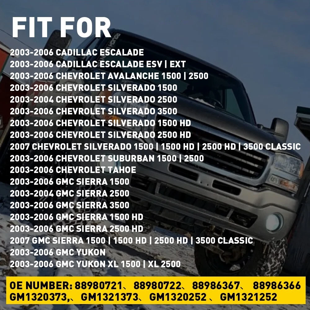 Specifications: OE: 88980721??88980722??88986367?? 88986366 GM1320373,??GM1321373??GM1320252 ??GM1321252 Bead color: white light Installation position: Bottom of the rear view mirror LED number: 18 Lumen: 730lms Color temperature: 6000K Waterproof: IP67 Service life: 50000+ hours Fit for: 2003-2006 Cadillac Escalade 2003-2006 Cadillac Escalade ESV | EXT 2003-2006 Chevrolet Avalanche 1500 | 2500 2003-2006 Chevrolet Silverado 1500 2003-2004 Chevrolet Silverado 2500 2003-2006 Chevrolet Silverado 3500 2003-2006 Chevrolet Silverado 1500 HD LED Side Mirror Lights Puddle 03-06 For Escalade Silverado Sierra Suburban Tahoe Specifications: OE: 88980721??88980722??88986367?? 88986366 GM1320373,??GM1321373??GM1320252 ??GM1321252 Bead color: white light Installation position: Bottom of the rear view mirror LED number: 18 Lumen: 730lms Color temperature: 6000K Waterproof: IP67 Service life: 50000+ hours Fit for: 2003-2006 Cadillac Escalade 2003-2006 Cadillac Escalade ESV | EXT 2003-2006 Chevrolet Avalanche 1500 | 2500 2003-2006 Chevrolet Silverado 1500 2003-2004 Chevrolet Silverado 2500 2003-2006 Chevrolet Silverado 3500 2003-2006 Chevrolet Silverado 1500 HD 2003-2006 Chevrolet Silverado 2500 HD 2007 Chevrolet Silverado 1500 | 1500 HD | 2500 HD | 3500 Classic 2003-2006 Chevrolet Suburban 1500 | 2500 2003-2006 Chevrolet Tahoe 2003-2006 GMC Sierra 1500 2003-2004 GMC Sierra 2500 2003-2006 GMC Sierra 3500 2003-2006 GMC Sierra 1500 HD 2003-2006 GMC Sierra 2500 HD 2007 GMC Sierra 1500 | 1500 HD | 2500 HD | 3500 Classic 2003-2006 GMC Yukon 2003-2006 GMC Yukon XL 1500 | XL 2500 Features: *Update Technology Our mirror puddle lamp adopts brighter superior LED chips than the original car , which can provide 6000k powerful light to maximize ground illumination. *Durable Materials Made of high-quality materials to ensure its long service life and durability. *Installation Notices Simple installation with a direct replacement, other modifications are not required. *Excellent service Pack of 2 LED side mirror puddle lights include driver and passenger side. For any questions about this item, please feel free to contact us within 24 hours! We'll reply to you as soon as possible. Packaging include: puddle light*2 Item Specifics Features CAN bus Compatible Bulb Fitment Code C5W Manufacturer Warranty Lifetime California Prop 65 Warning This product contains chemicals known to the State of California to cause cancer and birth defects or other reproductive harm. Vintage Part Yes OE/OEM Part Number 88980721??88980722??88986367?? 88986366 Performance Part No Lighting Technology LED Returns 60-Days LOVE IT or RETURN IT! Superseded Part Number GM1320373,??GM1321373??GM1320252 ??GM1321252 Suitable For Parking Light Universal Fitment No Interchange Part Number 88980721 88986367 88980722 88986366 GM1320373 GM1320252 GM1321373 GM1321252 Light Color Cold White Number of Bulbs 2 Manufacturer Part Number OEM#A7703G0F5202GA7903G0A8003GB3203GB3903G_03_04_05_06_2003_2004 Brand Unbranded Type Light Bulb Color Temperature 6500K FAQ ♥ If you have a decoding problem or any other problems, please contact us first, we will help you with it. We will reply you within 24 hours in working days. I'm a new seller, thanks a lot for your trust and convince! I will serve you with all my heart. ♥ Q1: Will this bulb fit my vehicle? A: We can match almost any vehicle to one of our bulb sizes. eBay only lets us include some vehicle fitments per listing, but if your vehicle does not show up on the compatibility table at the top of our listings, welcome you to contact us for free consulation before purchasing a product. Q2: My item has not arrived, what's taking so long? A: Sometimes items take longer than expected, especially if it’s going far or to rural area. Check with your post office to see if your item has been held up. Sometimes Royal Mail will not update a tracking number until it has arrived at its destination. If your item still don't arrive after a few days, let us know so we can double check for you and help solve it asap. Q3: My bulbs won't fit, help! A: Special bulb holder may be required. See if you can take the holder from the stock bulb. If not, let us know. The bulb size may be wrong, double check the item you received with the item you ordered. Do you have an aftermarket lighting housing? These may not be perfectly fitted for aftermarket bulbs and will require some manual modifications. Q4: Neither side lighting up? Both sides flicker, hyper flash, or work inconsistantly. A:Check the light fuses, and then check the ballast plugs to insure correct installation. If this doesn't work, there may be a voltage problem with the vehicle. You probably just need a relay or capacitor. Even though some bulbs are builtin resistors, they may still need a decoder. Pay & Ship (1). We gladly accepts payment via PayPal, We will ship your item(s) within 24 hours. (2). Before payment, please keep the consistency of Paypal address and ebay address. (3). Quantity orders are welcome! Returns (1). We offer 60 days free return policy. Please contact us within 60 days from the date you receive your order if you have any issues with the product or want return. Refund will be send after we got your resend package. (2). All returned items should be in the original packaging , return tracking information should be provided . Contact Us (1).Negative feedback will not help resolve any problems you have, please contact us via eBay messages before leaving negative feedback , our customer service will make best effort to help you with the issues. (2).We maintain high standards of excellenceand strive for 100% customer satisfaction! Feedback is very important to us. We request that you contact us immediately before you give us neutral or negative feedback, so that we can satisfactorily address your concerns. About us We're professional in car and motorcycle accessories, especially in LED bulbs. We have our own factory and R&D team. Our belief is to sell top quality 
