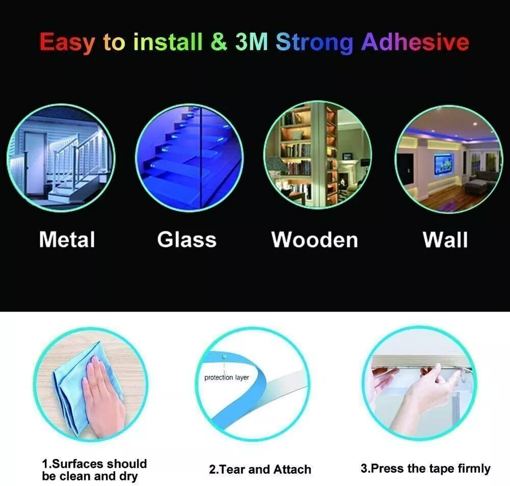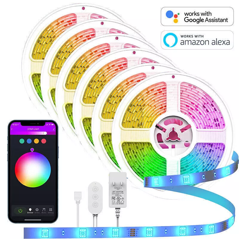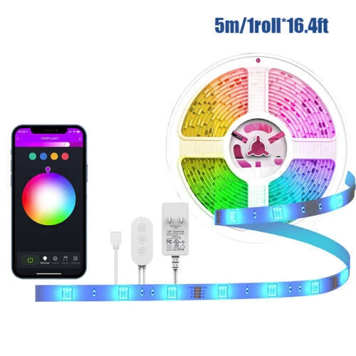 Product Description Product description: 32ft(2Roll*16.4ft)Key indoor use 【 RGB Color Changing 】This light strip has 20 colors and 8 modes: Quick/Slow/Auto/Flash/Fade/Jump. The 44 keys infrared controller has 6 DIY keys for memorizing the colors that you preferred, You can choose the color, modes, speed, DIY effects settings, and brightness of the LED strips according to your mood and atmosphere and enjoy the most pleasant lighting. 【 Easy Installation 】 LED strips are made of flexible materials and their backs are self-adhesive. The LED strips can be cut along the cutting marks. Without damaging the remaining LED strips.The LED strip strip can be easily attached anywhere. Bend, expand and design at your own discretion. 【 Wide application 】 The LED strip can be used outdoors. The colorful lights in the dark are perfect for watching TV, Perfect for garden, Christmas, party, wedding, vacation, dining room, bedroom, patio, TV, sofa, mirror, beds, wardrobes, kitchens, blankets, outdoor balconies, Bars, etc. 【 Full Kits & Top Service 】 Packing include: 2×LED strip lights 5M (Total 10 M) , 1×44-keys Infrared Remote Control, 1×Power supply, 1×IR control box, 1×User manual. ►Your customer service will be through a professional customer team, you can buy without worry. If you have any questions, we are happy to help. 16.4ft smart light strip Hands-Free Voice Control: The smart LED strip light works with both Alexa and Google Home. With simple voice commands, frees up hands to turn on and off, change colors, or dim brightness Wireless App Control: The easy App_𝗚𝗼_𝘀𝘂𝗻𝗱 control provides convenient management over your led lights, have access to customized functions like 8 DIY scene modes and a daily sleeping timer and schedule. (Only Support 2.4GHz WiFi ) Sync to Music: The built-in mic allows the LED lights to sync to various dynamic music. Use the smart app to let your lights dance to music beats Timer and Schedule: Set a timer for the bedroom and living room LED light strip by your family's daily routine, manage the time to get up and sleep by lights on and off Easy to Install: Including 16.4Ft LED light with adapter and mounting clips. Please keep the surface clean and dry when attaching the steady and strong 3M adhesive of the strip light Light Source Type: LED Color: Rgb (Red, Green, Blue) Special Feature: Corded Connectivity Protocol: Wi-Fi-2.4GHZ Material: Copper Wattage: 12 watts Control Method: App Controller Type: App Control, Voice Control Item Weight: 7 ounces Package Dimensions: 6.5 x 5.43 x 1.26 inches Specific Uses: Indoor use only Light Direction: Adjustable About Us Payment Shipping Returns Contact Us We pursuit 100% transactions satisfaction,We attach importance to every customer from around the world,Please buy with confident!if you have any issue,you can just give us a message,and we give you full resolve. We guarantee 100% customer satisfaction. We will offer professional product support:Product Inquiry,Aftersale Service,Shipping solution and so on.If you got question or problem,please just contact us by ebay message. powered by