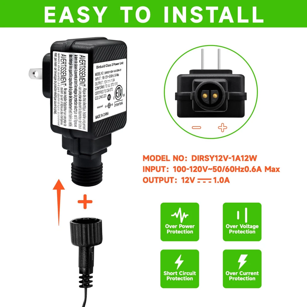 We are a professional manufacturer to produce LED adapter more than 10 years, if you need led adapter customized, please contact us. Our transformer is IP44 rainproof, it is for indoor and outdoor use. Please check images and specifications to mare sure if it fits for your device or not, if you don’t know how to choose the transformer, please contact us for checking. Product Specifications: Waterproof: IP44 Input Voltage: 100V-240V, 50-60Hz 0.25A Output Voltage: 12V, 1A Rated Watts: 12W Package Includes: 1* LED Transformer Input: 100V-240V, 50- 60HZ, 0.25A, Output: 12V, 1000mA, 12W This 12V LED transformer only with steady on mode, the adapter don’t with cord. Waterproof IP44, for indoor and outdoor use This 12V LED transformer only with steady on mode, the adapter don’t with cord. This transformer only fits for 12V low voltage led device, such as 12V copper wire string lights, projector light.