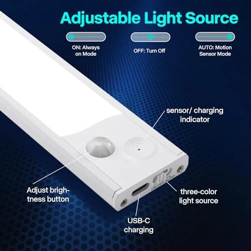 Menu 1. We require immediate payment. 2. We currently accept payment via eBay managed payments only. 3. Once payment is cleared, we will dispatch your shipment within 1-3 business days. Please refer to the "Shipping" tab for more information regarding shipping speed to your destination. LED Under Cabinet Lights with 112 LEDs, Motion Sensor LED Night Light for Bedroom,Kitchen,Magnetic Dimmable Wall Closet Light - 2 Pack(12 inch) Product description 【Enhanced Brightness】Under cabinet Llghts feature 112 energy-efficient LED chips, providing bright yet eye-friendly illumination. Equipped with three color temperatures - warm white (3000K), natural white (4500K), and cool white (6500K), Operated Motion Sensor Light Indoor cater to various lighting needs. 【Adjustable Working Modes】 Under cabinet led strip lights come with a 3-mode switch - On-Off-AUT, allowing you to set them to stay constantly on, off, or motion sensor mode. In motion sensor mode, under cabinet lighting wireless will automatically turn on within 9.8 feet detecting human motion in dark or low-light environments, shutting off automatically after 30 seconds of no motion. 【Wireless Rechargeable Design】With a built-in 1000mAh rechargeable battery, our motion sensor light can be easily recharged using a USB-C cable.Say goodbye to wiring concerns, outlet availability issues, or battery replacements. The bathroom motion sensor light can be used continuously for up to 4.5 hours on a single full charge. 【Versatile Applications】Featuring a magnetic strip, these portable motion sensor light can be effortlessly attached to any iron surface. This installation design allows for easy detachment for charging or repositioning, making them ideal for bedrooms, cabinets, workshops, basements, garages, hallways, staircases, and more. 【Customer Service】 All our's led under cabinet lights for shop are confidently d for 3 years!We aim for quality followed up with quality customer service directly provided by manufacturer.If you have any question about the led under-counter light fixtures, please do not hesitate to contact us for prompt assistance. PLEASE MESSAGE US IF YOU HAVE ANY OTHER QUESTIONS, AND MANY THANKS FOR READING ALL OF THIS. Copyright ©#. All Rights Reserved.