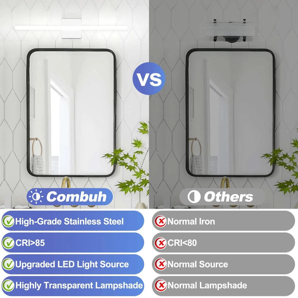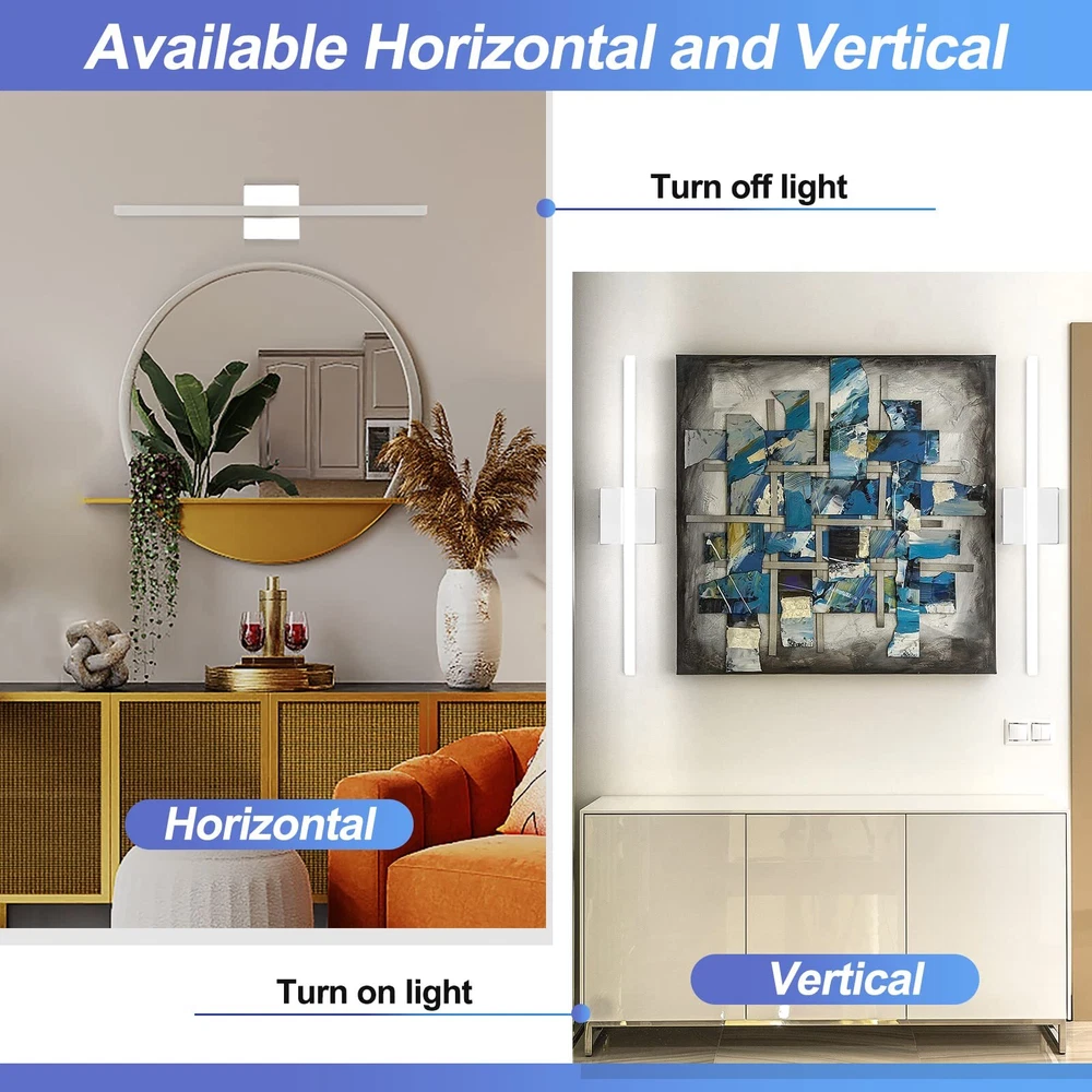 MODERN BATHROOM LAMP: Upgrade your bathroom with the sleek and modern design of this 14W/24Inch lamp. It provides 1250LM of natural white light at a color temperature of 6000K, offering a softer and comfortable atmosphere. Please note that it is not dimmable and is controlled by a common switch. HIGH-QUALITY CONSTRUCTION: The bathroom wall light over the mirror is crafted with a durable stainless steel base and acrylic material, ensuring long-lasting performance and preventing rust. PREMIUM LED INTEGRATED: Equipped with premium 2835SMD, this bath lighting fixture delivers brilliant light while protecting your eyes and eliminating any flash. It also features short circuit protection for enhanced safety. Additionally, its energy-saving design contributes to save your money on electricity bills. AUXILIARY LIGHTING: Please note that this light serves as an auxiliary source and is not intended to provide enough illumination to light up the entire bathroom. However, it is perfect for adding extra brightness and enhancing specific areas, such as mirrors or vanity spaces. WIDE APPLICATION: This mirror light is versatile and suitable for various applications, including bathroom lighting and makeup application. It can be installed in toilets, bathrooms, bedrooms, mirror cabinets, and other similar scenarios. IP44 ANTI-FOG: The body of the restroom light fixture is specifically designed to resist fog and water vapor in the bathroom, ensuring clear visibility. It is built to withstand the humid environment and maintain optimal performance. Please note: if using with a dimmer switch will cause stroboscopic Flicker, please use a GENERAL switch(Not included in the package)