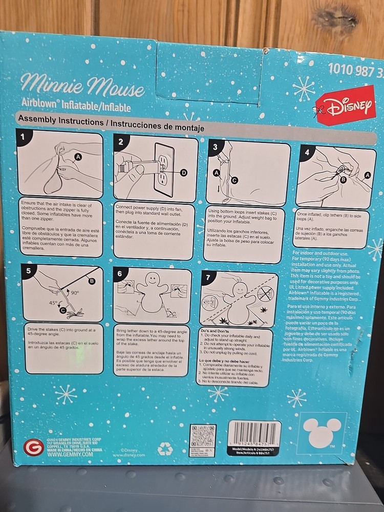 Add a touch of whimsy to your holiday decor with the 3.5 ft. LED Woodland Minnie in Green Shirt Christmas Airblown Inflatable. This charming inflatable is designed to bring joy to your festive celebrations, featuring a cheerful Minnie decked out in a green shirt, ready to greet guests with a warm holiday smile. Crafted by Gemmy, a leader in holiday inflatables, this delightful piece is equipped with LED lighting for a brightly lit display that stands out in the dark. The lightweight design, weighing in at just 2.85 lbs, ensures easy setup and a stable presence in your lawn or garden, making it a hassle-free addition to your Christmas festivities.