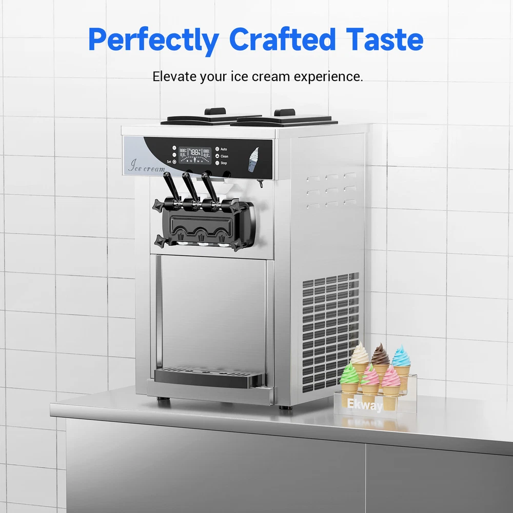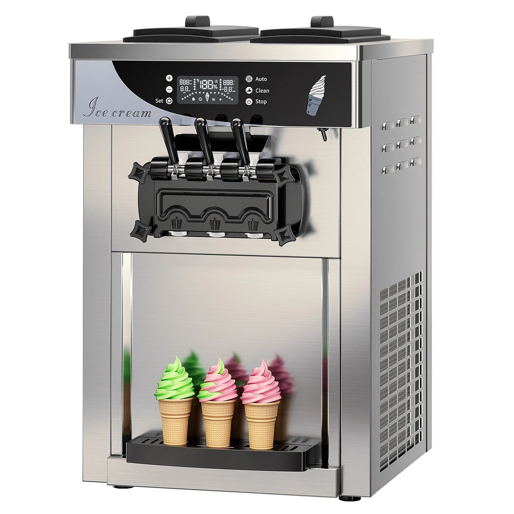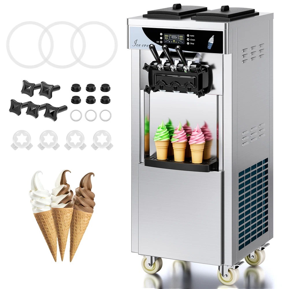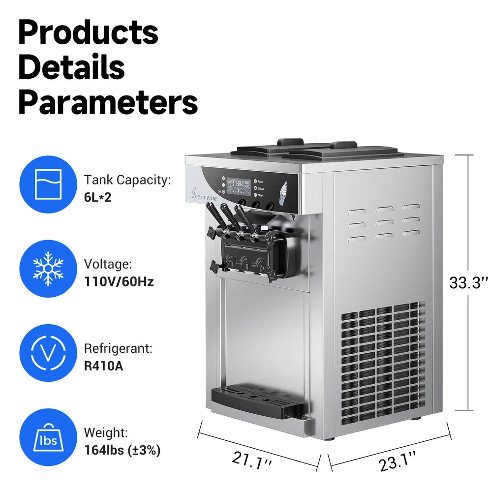 LEEVOT Commercial Ice Cream Machine 18-35L Countertop Soft Serve Yogurt Maker Item Description 828 Title: LEEVOT Commercial Ice Cream Maker Machine, 25L/H Countertop Soft Serve Machine With 2 x 6L Tanks, Auto Clean, 2+1 flavors,1800W Bullet points: 【High Performance】 The commercial soft Ice cream maker allows you to make multiple batches continuously, producing the creamy consistency by effectively mixing ingredients from top to bottom with the mixing paddle the whole day, just keeping two hoppers filled. 【Double 6L Hoppers】Equipped with two 6L 304 stainless steel hoppers on its top, the production can reach up to 25L per hour, and the speed can be adjusted to level 6, which is suitable for different work scenarios. 【1800W Powerful Compressor】 Driven by a 1800 watt brand compressor, this commercial ice cream maker has faster cooling, less noise, and lower power consumption. R410a refrigerant makes ice cream production more efficient and energy-saving. 【Intelligent LCD Panel Control】 You can set the time, temperature, and hardness with the convenient control panel. The quantity will also be displayed on the screen for direct observation. 【One-click Automated Cleaning Operation】 Worktop soft ice cream machine removes any remaining ice cream in less than five minutes with its self-cleaning function, and it is fast and straightforward, switching up the flavors on a regular basis is effortless. 【2+1 flavors & 4 nozzles】Our ice cream maker has three ergonomic handles, it offer 3 flavors (2 single flavors & 1 mixed flavor) and 4 nozzles to enrich your choices and satisfy the diverse demands of your customers. 928 Title: LEEVOT Commercial Ice Cream Maker Machine, 35L/H Countertop Soft Serve Machine With 2 x 6L Tanks, Auto Clean, Pre-cooling function, 2+1 flavors, 2200W Bullet points: 【High Performance】 The commercial soft Ice cream maker allows you to make multiple batches continuously, producing the creamy consistency by effectively mixing ingredients from top to bottom with the mixing paddle the whole day, just keeping two hoppers filled. 【Double 6L Hoppers】Equipped with two 6L 304 stainless steel hoppers on its top, the production can reach up to 35L per hour, and the speed can be adjusted to level 6, which is suitable for different work scenarios. 【2200W Powerful Compressor】 Driven by a 2200 watt brand compressor, this commercial ice cream maker has faster cooling, less noise, and lower power consumption. R410a and R134 refrigerant makes ice cream production more efficient and energy-saving. 【Intelligent LCD Panel Control】 You can set the time, temperature, and hardness with the convenient control panel. The quantity will also be displayed on the screen for direct observation. 【One-click Automated Cleaning Operation】 Worktop soft ice cream machine removes any remaining ice cream in less than five minutes with its self-cleaning function, and it is fast and straightforward, switching up the flavors on a regular basis is effortless. 【2+1 flavors & 4 nozzles】Our ice cream maker has three ergonomic handles, it offer 3 flavors (2 single flavors & 1 mixed flavor) and 4 nozzles to enrich your choices and satisfy the diverse demands of your customers. 【Pre-cooling Function】The ingredients can be stored in the hopper for longer. Once pre-cooling is set, the soft serve ice cream maker will work overnight to keep the ingredients fresh at a low temperature, ensuring they are ready for you on the next day. 928T Title : LEEVOT Commercial Ice Cream Maker Machine, 25L/H Countertop Soft Serve Machine With 2 x 6L Tanks, Auto Clean, 2+1 flavors, 1650W Bullet points: 【High Performance】 The commercial soft Ice cream maker allows you to make multiple batches continuously, producing the creamy consistency by effectively mixing ingredients from top to bottom with the mixing paddle the whole day, just keeping two hoppers filled. 【Double 6L Hoppers】Equipped with two 6L 304 stainless steel hoppers on its top, the production can reach up to 25L per hour, and the speed can be adjusted to level 6, which is suitable for different work scenarios. 【1650W Powerful Compressor】 Driven by a 1650 watt brand compressor, this commercial ice cream maker has faster cooling, less noise, and lower power consumption. R410a refrigerant makes ice cream production more efficient and energy-saving. 【Intelligent LCD Panel Control】 You can set the time, temperature, and hardness with the convenient control panel. The quantity will also be displayed on the screen for direct observation. 【One-click Automated Cleaning Operation】 Worktop soft ice cream machine removes any remaining ice cream in less than five minutes with its self-cleaning function, and it is fast and straightforward, switching up the flavors on a regular basis is effortless. 【2+1 flavors & 4 nozzles】Our ice cream maker has three ergonomic handles, it offer 3 flavors (2 single flavors & 1 mixed flavor) and 4 nozzles to enrich your choices and satisfy the diverse demands of your customers.