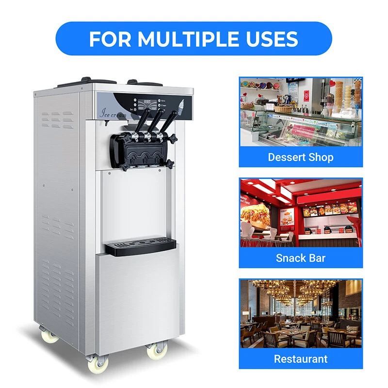 LEEVOT Commercial Ice Cream Machine 3-Flavor Electric Frozen Soft Yogurt Maker Description: 【 High Performance 】 The commercial soft Ice cream maker allows you to make multiple batches continuously , producing the creamy consistency by effectively mixing ingredients from top to bottom with the mixing paddle the whole day, just keeping two hoppers filled. 【 Double 6L Hoppers 】 Equipped with two 6L 304 stainless steel hoppers on its top, the production can reach up to 25L per hour, and the speed can be adjusted to level 6, which is suitable for different work scenarios. 【 1800 W Powerful Compressor 】 Driven by a 1800 watt brand compressor, this commercial ice cream maker has faster cooling, less noise, and lower power consumption. R4 10a refrigerant makes ice cream production more efficient and energy-saving . 【 Intelligent LCD Panel Control 】 You can set the time, temperature, and hardness with the convenient control panel. The quantity will also be displayed on the screen for direct observation . 【 One-click Automated Cleaning Operation 】 Worktop soft ice cream machine removes any remaining ice cream in less than five minutes with its self-cleaning function, and it is fast and straightforward, switching up the flavors on a regular basis is effortless. 【 2+1 flavors & 4 nozzles 】 Our ice cream maker has three ergonomic handles, it offer 3 flavors (2 single flavors & 1 mixed flavor) and 4 nozzles to enrich your choices and satisfy the diverse demands of your customers. Package Included: Ice Cream Machine *1 Instuction Manual *1 Shipping Payment Terms of Sale Rerurn Contact us Shipping 1. We will ship out within 1-3 business day(s) after receiving payment. 2. It generally take 1-3 business day(s) to arrive After ship out 3. You will get the item about 2-6 business day(s) 4. If you do not receive your item(s) by 7 business days, please feel free to contact us through ebay mail system, we will try our very best to resolve any problems with you. Notice: Business days excluded all Saturdays, Sundays and public holidays . Payment We accept the payment method include paypal、payonner or credit card Terms of Sale 1. If there are any problems with our products,Please feel free to contact us.We will always here to solve them for you.You don't need to contact ebay or paypal.And please DO NOT leave us Neutral/negative feedback,It won't help the problem to be solved.And it is the worst hurt to a seller.We should try our best to make a happy easy transaction. 2. If you are satisfied with our products and our service,please tell your friend and leave us positive feedback;if you are not satisfied with our products or service,please DO tell us. 3. After receiving the item,you could contact us within 30 days.Refund will be given as money back or item exchange. Rerurn All our products sold through our ebay store are covered by the 30 day right to cancel policy. To enable us to authorise a return you must notify us within 30 days from the day you receive your goods by contacting us via eBay messaging system stating your order date and user ID. Any parcel returned to us without authorisation will be refused. It is the customer's responsibility for the return shipping cost and to take reasonable care and ensure the items returned are received by us in the original state, unused and undamaged. your will get the refund within 14 days after we receive the returned goods, include the full price of the goods; any deposit/part payments and the cost of the original standard delivery service (premium delivery services will not be refunded) . Contact us 1. Working Day: Monday to Saturday 2. Working Time: 9:00 am to 18:00 pm (GTM +8:00 Beijing) All emails will be answered within 1 business day( Except Holidays or weekends ). If you do not receive our reply, please kindly re-sent your email and we will reply to you as soon as possible.Thanks We are not responsible for any custom duty or import tax. We will leave POSITIVE FEEDBACK after receiving the positive feedback. Please contact us first before giving a non positive feedback. Thank you for giving us a chance to make things right by good communication. Once you purchase, please DON'T leave negative or neutral feedback.