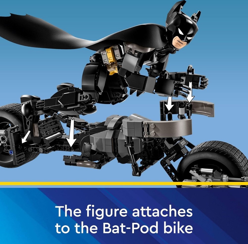The LEGO Super Heroes set 76273 features a Batman Construction Figure and the Bat-Pod Bike, with a total of 713 pieces for building. Released in 2024 as part of The Batman subtheme, this set is designed for builders aged 12 and above, showcasing a detailed Batman character and his iconic vehicle. The set comes in new, sealed packaging from Denmark and appeals to fans of Super Heroes, Fantasy, Batman, and DC comics. With dimensions of approximately 15.67 inches in length, 11.02 inches in height, and 9.02 inches in width, this set offers a creative and engaging building experience for LEGO enthusiasts. **Ships Same/Next Day!