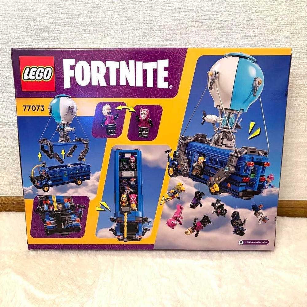 Description The LEGO® Fortnite Battle Bus (77073) has arrived from the world of gaming! Hop on this awesome bus and set off on an adventure. (Recommended age: 10+) This iconic Battle Bus , marked by its hot air balloon , isn’t just about spinning wheels and a removable roof! It comes packed with Slurp Juice, a Grappler, a Pickaxe, Slap Juice , and more, along with nine LEGO-style Fortnite character minifigures , making it a perfect real-world replica of the in-game experience . Load up your crew and embark on an exciting adventure ! This set makes a fantastic gift for Fortnite fans of all ages and LEGO Fortnite enthusiasts . Once built, the model fits perfectly as a decoration in a kid’s room or a gaming space , bringing the thrill of Fortnite into reality with a fun and creative building experience . Key Features Creative Play – A fun building set that allows Fortnite fans of all ages (10+) to bring their adventures to life in the real world. LEGO® Vehicle Set – Build an iconic Fortnite vehicle with LEGO bricks. Packed with Details – Includes Slurp Juice, a Grappler, a Pickaxe, Slap Juice , and more for authentic gameplay-inspired fun . 9 LEGO® Fortnite Minifigures – Featuring Battalion Brawler, Adventure Peely, Brite Bomber, Cuddle Team Leader, Cube Assassin, Trespasser Elite, Drift, Meowscles, and Raven to enhance the adventure. Perfect Gift for Kids & Gamers – A great building set for Fortnite fans and video game lovers of all ages. Interactive Building Experience – This set is compatible with the LEGO Builder app , allowing builders to zoom, rotate, and view their model in 3D while assembling. LEGO® Fortnite Collection – A part of the LEGO Fortnite series , designed to bring the excitement of Fortnite into real-world creative play . Size – Approx. 28 cm (11") high × 28 cm (11") long × 13 cm (5") wide Piece Count – 954 pieces Shippingac DHL or FeDex or Japan Post International Buyers --Please Note: Import duties, taxes, and charges are not included in the item price or shipping cost. These charges are the buyer's responsibility. Please check with your country's customs office to determine what these additional costs will be prior to bidding or buying.