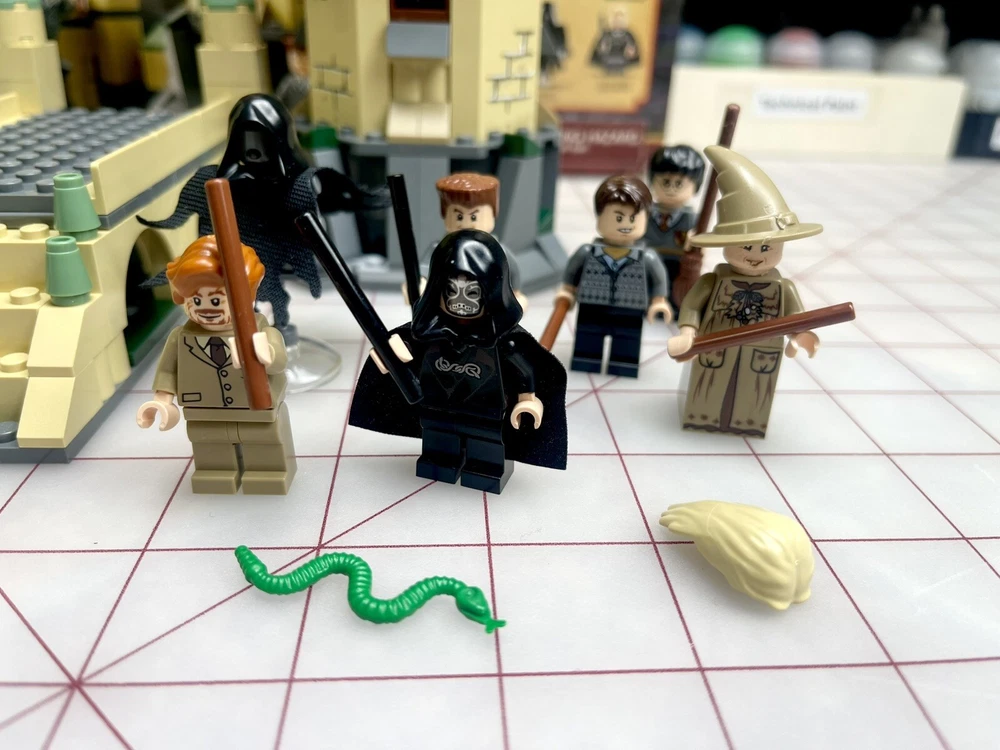 The LEGO Harry Potter Hogwarts set (4867) is a retired set released in 2011. It consists of 466 pieces and includes all 7 mini-figs, including the hard to find and rare Lucius Malfoy, Dementor, and Neville Longbottom. The set represents scenes from Harry Potter and the Deathly Hallows movie, featuring Hogwarts. The set is 100% complete with its original box and is ideal for fans of fantasy and movies aged 7-14. Box has some damage and was written on, as seen in photos
