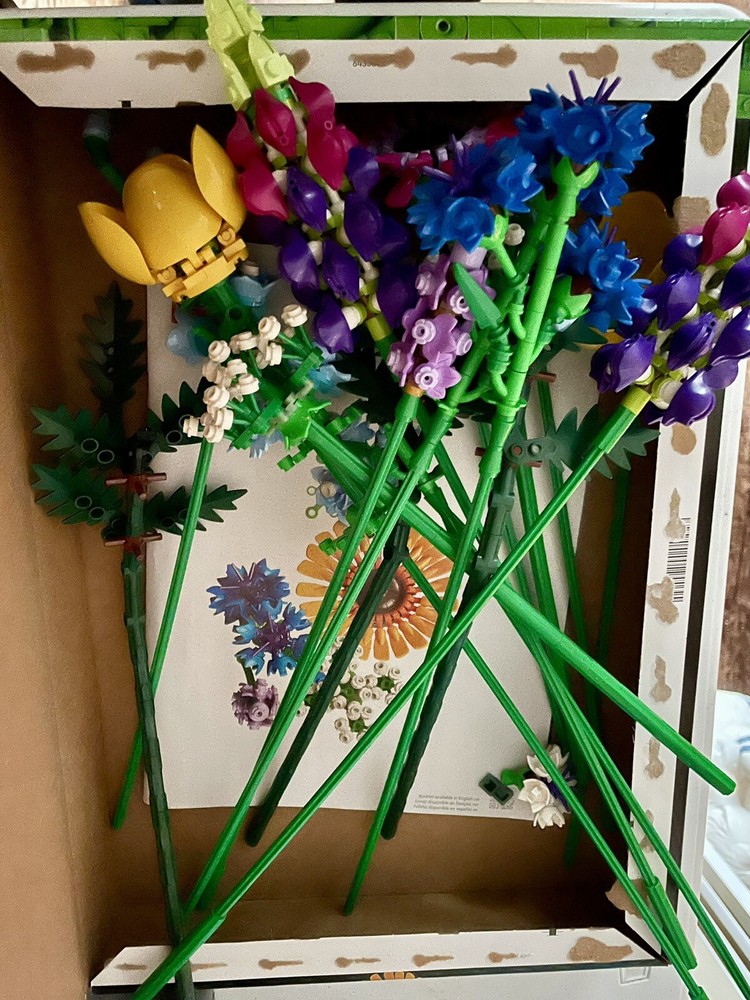 The LEGO Icons Wildflower Bouquet set (10313) is part of the Botanical Collection and includes 939 pieces to build a detailed flower arrangement. This advanced set is designed for ages 18 and up and features a variety of colorful wildflowers. The set was released in 2023 and comes in a box packaging.
