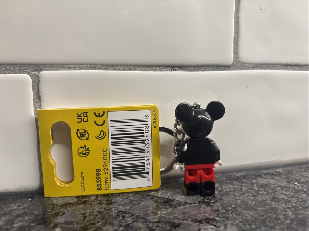 The product is a new 2020 LEGO Mickey Mouse Key Chain featuring the iconic Disney character, Mickey Mouse. This officially licensed Disney keyring is a collectible item perfect for fans of the beloved franchise. Made with high-quality LEGO pieces, this key chain is durable and long-lasting, making it a fun and practical accessory for anyone who loves Mickey Mouse and Disney in general.