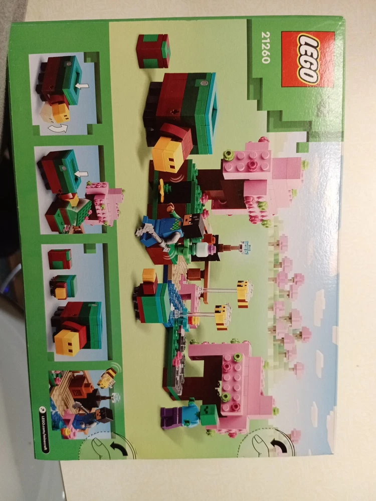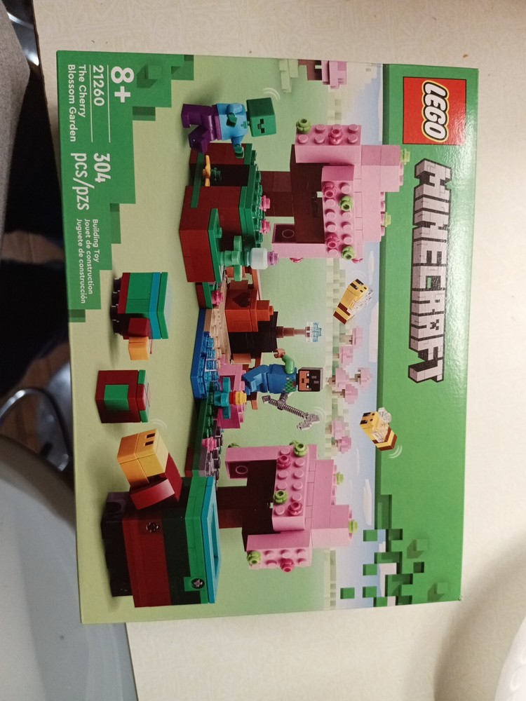 The LEGO set is themed around Minecraft and is named "The Cherry Blossom Garden" with set number 21260. It includes 304 pieces suitable for ages 8 and up, allowing builders to create a detailed garden scene. The set features a building subtheme with dimensions of 8.11 inches in length, 11.02 inches in height, and 7.83 inches in width. It is part of the LEGO brand, released in 2024, appealing to those interested in constructing buildings within the Minecraft universe.
