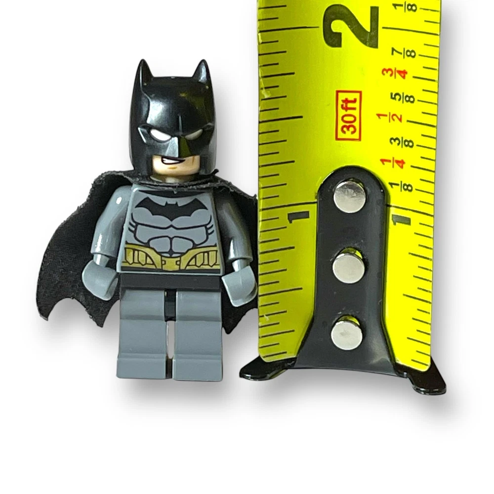 LEGO Minifigure Batman Jokerland Gray Suit Collectible Unleash your inner superhero with this exclusive LEGO Minifigure Batman Jokerland Gray Suit Collectible. This highly detailed figure features the iconic gray suit worn by the Batman in his infamous Gotham City lair. Perfect for collectors and fans of the Dark Knight, this figure is a must-have for any LEGO enthusiast. The minifigure is in good used condition and ready to wear. There is some wear on the cape.
