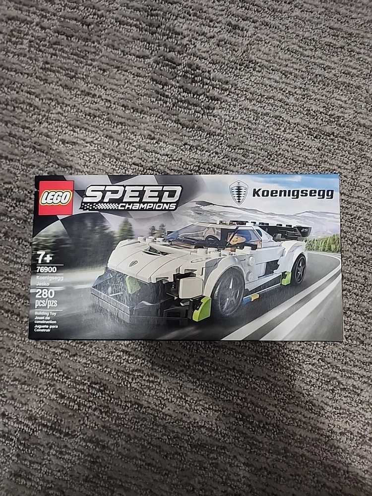 This is the LEGO SPEED CHAMPIONS set number 76900, featuring the Koenigsegg Jesko. Released in 2021, this retired set is inspired by the high-performance car and includes a LEGO model with dimensions of 10.91 inches in length, 9.13 inches in width, and 3 inches in height. Suitable for ages 7 and up.
