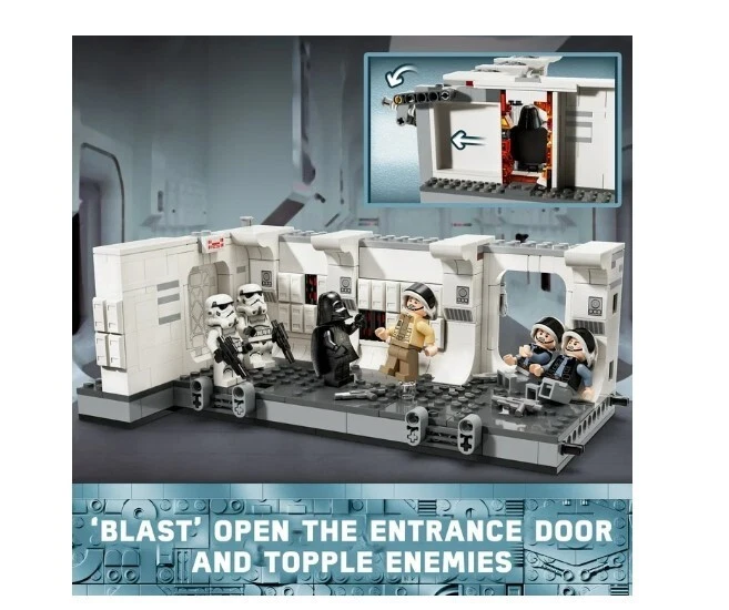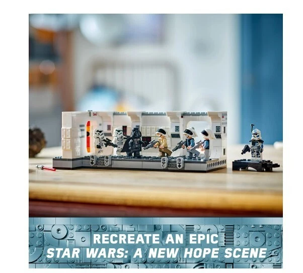 LEGO Star Wars: A New Hope Boarding the Tantive IV Fantasy Toy,75387,Freeship USA Product details Relive Darth Vader and his Stormtroopers boarding the Tantive IV in Star Wars: A New Hope with this buildable toy playset (75387) for kids aged 8 and up. It features a detailed recreation of the corridor inside Tantive IV where Darth Vader’s Stormtroopers battled Captain Antilles’ Rebel Fleet Troopers, with levers to ‘blast’ open the entrance door and topple characters during battle play. Connectors allow builders to add another 75387 set (sold separately) to extend the corridor. This collectible brick-built fantasy toy playset has 7 LEGO Star Wars minifigures, including Darth Vader, 2 Stormtroopers, 2 Rebel Fleet Troopers and Captain Antilles with accessories for action play. A top gift for young fans and Star Wars memorabilia collectors, the building set also includes a special LEGO Star Wars 25th Anniversary of Clone Trooper Fives minifigure with a display stand. Contains 502 pieces. LEGO Star Wars Tantive IV buildable playset for kids – Recreate the iconic Boarding the Tantive IV scene from Star Wars: A New Hope where Darth Vader and his Stormtroopers battled the Rebels 7 LEGO Star Wars minifigures – Darth Vader, 2 Stormtroopers, 2 Rebel Fleet Troopers and Captain Antilles, plus a LEGO Star Wars 25th anniversary of Clone Trooper Fives minifigure with a display stand Buildable fantasy toy playset with fun features – Flick levers to ‘blast’ open the entrance door to the corridor and topple LEGO® minifigures during battle play Collectible Star Wars toy for kids – Connectors allow builders to add another 75387 set (sold separately) to extend the corridor Fun gift for Star Wars fans aged 8 and up – Give this collectible building toy as a birthday gift to kids who are into Star Wars and collectors of Star Wars memorabilia LEGO Star Wars sets for all ages – LEGO Star Wars building toys enable kids and adult fans to recreate iconic scenes, make up their own action adventures or simply display the brick-built models Build, play and display – The Tantive IV corridor buildable model in this 502-piece set measures over 3 in. (8 cm) high, 8.5 in. (22 cm) wide and 5 in. (13 cm) deep More details Features Collectible Brand LEGO Age Range 8 Years & Up Character Darth Vader, Clone Trooper Fives Product Line LEGO Star Wars Theme LEGO Star Wars Manufacturer LEGO System Inc Material Plastic Color Multicolor Assembled Product Weight 1.933 lb Assembled Product Dimensions (L x W x H) 13.94 x 7.52 x 3.58 Inches