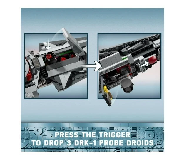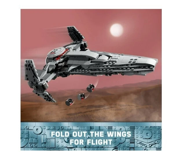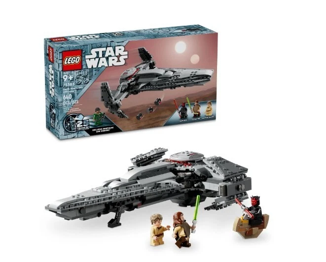 LEGO Star Wars: The Phantom Menace Darth Maul’s Sith Infiltrator Starship Toy Product details Build Darth Maul’s Sith Infiltrator (75383) and role-play his pursuit of Qui-Gon Jinn from Star Wars: The Phantom Menace with this starship building toy for kids ages 9 and up. A gift idea for Star Wars fans and collectors, this unique set features a detailed LEGO brick-built toy model of Darth Maul’s personal starship, with lots of playful features to inspire action-packed fantasy adventures. Fold out the wings and retract the landing gear for flight, fire the 2 spring-loaded shooters and press the trigger to drop 3 DRK-1 Probe Droids from the front compartment. There are 4 LEGO minifigures for creative play: Darth Maul, Anakin Skywalker and Qui-Gon Jinn, plus an exclusive LEGO Star Wars 25th anniversary Saw Gerrera minifigure with a display stand. Darth Maul is equipped with a double-bladed lightsaber, and Qui-Gon Jinn has a lightsaber for duels, and the set also includes Darth Maul’s Bloodfin speeder, which fits inside the starship cockpit. Contains 640 pieces. LEGO Star Wars brick-built Darth Maul starship toy – Recreate Darth Maul’s Sith Infiltrator and Bloodfin speeder, and play out Star Wars: The Phantom Menace scenes with this building toy for kids Fantasy-adventure building toy with 4 LEGO minifigures – Darth Maul, Anakin Skywalker and Qui-Gon Jinn, plus an exclusive LEGO Star Wars 25th anniversary Saw Gerrera minifigure with a display stand Playful details – Features foldout wings for flight, retractable landing gear, 2 spring-loaded shooters and a trigger-operated hatch to release the 3 DRK-1 Probe Droids from the front compartment Collectible building toy for creative play – Darth Maul can sit on his Bloodfin speeder in the starship’s cockpit, and the set also includes his double-bladed lightsaber and Qui-Gon Jinn’s lightsaber Gift idea for kids ages 9 and up – This LEGO Star Wars starship building toy makes a fun birthday gift for boys, girls and any Star Wars fan or collector Collectible Star Wars building toys for kids and all ages – LEGO Star Wars sets allow kids and adult fans to relive classic scenes, role-play unique stories or simply display the buildable models Build, play and display – The brick-built Star Wars toy starship in this 640-piece LEGO building set measures over 3 in. (7 cm) high, 11 in. (27 cm) long and 7.5 in. (20 cm) wide More details Features Collectible Brand LEGO Age Range 9 Years & Up Character Darth Maul Product Line LEGO Star Wars Theme LEGO Star Wars Manufacturer LEGO System Inc Material Plastic Color Multicolor Assembled Product Weight 1.74 lb Assembled Product Dimensions (L x W x H) 13.94 x 7.52 x 3.58 Inches