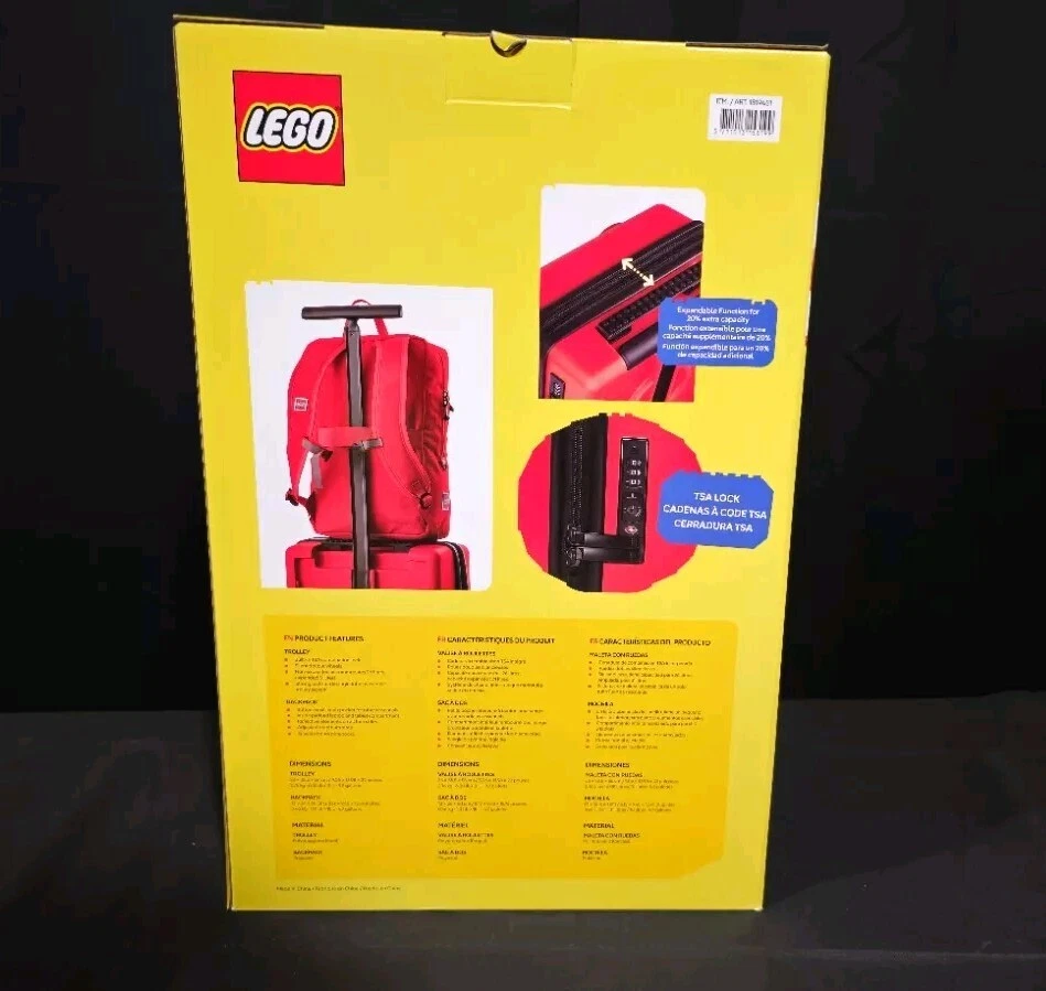 Introducing our remarkable line of LEGO®-inspired trolley and backpack, where functionality meets the timeless appeal of LEGO brick design. Crafted with precision and a passion for play, our expandable trolley and compatible backpack with trolley strap bring together the convenience of a rolling carry-on and matching backpack with the iconic look and feel of LEGO bricks. Just like LEGO bricks this set is built to last and endure the rigors of travel, this set is constructed with high-quality materials, reinforced corners, and secure closures, ensuring that belongings remain safe and protected throughout the journey. Includes: (1) Trolley (1) Backpack Features: Trolley material - polypropylene Backpack material - polyester Colors: bright red, bright blue and bright yellow Dimensions & Weight: Trolley 9.06” W x 13.98” L x 22” H; 6.08 lbs Backpack 5.12” W x 9.45”L x 15.74” H; 1.01lbs