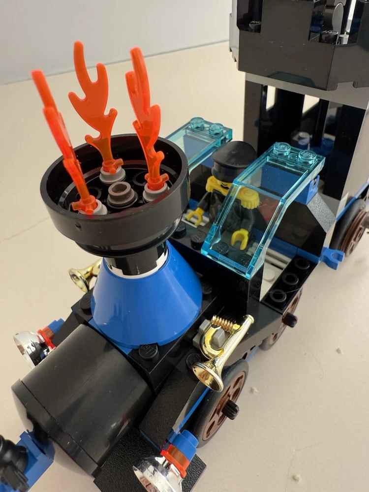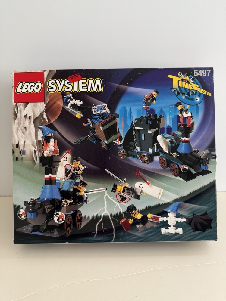 This is a LEGO Time Twisters set, specifically the Twisted Time Train (6497) from the Time Cruisers theme. Released in 1997 with 296 pieces, this retired set includes the box, instructions, and features a train design. Box may show some wear. For ages 9-12 and is made of plastic. 3 part train: engine with pilot seat, observation car with balcony, Ghost car with castle like features. 2 mini figures, Ghost and Skeleton. I’ve been an adult collector of Legos and other collectibles for the past 30 years. All of my items have been purchased new and have only had one owner-me. It is stored in their original boxes in a smoke-free environment.