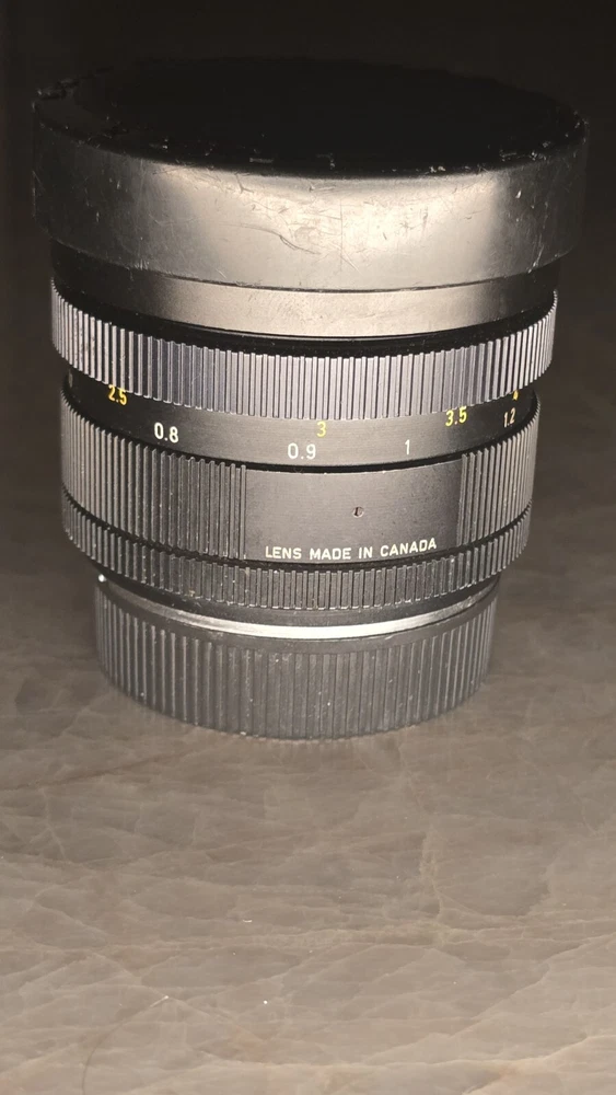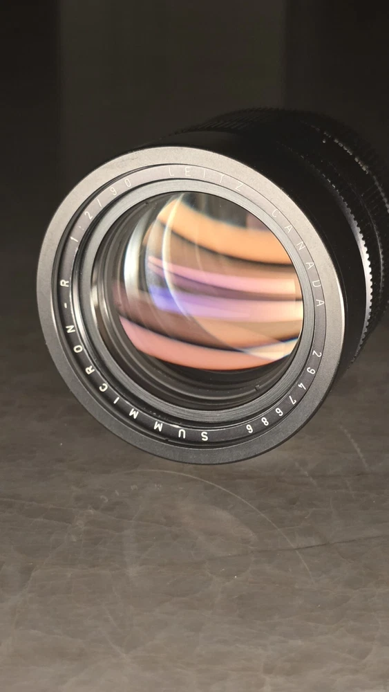 LEICA Summicron-R 90 mm f/2 MF 3 Cam Lens Used. In good shape. Everythibf functions, focus is good, iris works. The tiniest bit of haze on the rear element. Minor dust. Neither affect image. At least nothing I've noticed. Solid portrait lens. Comes with lens cap and back cap.