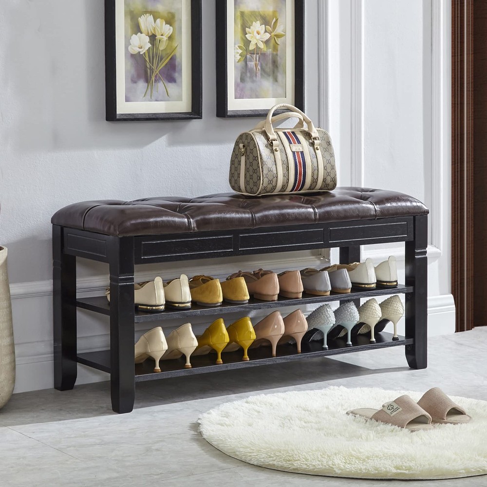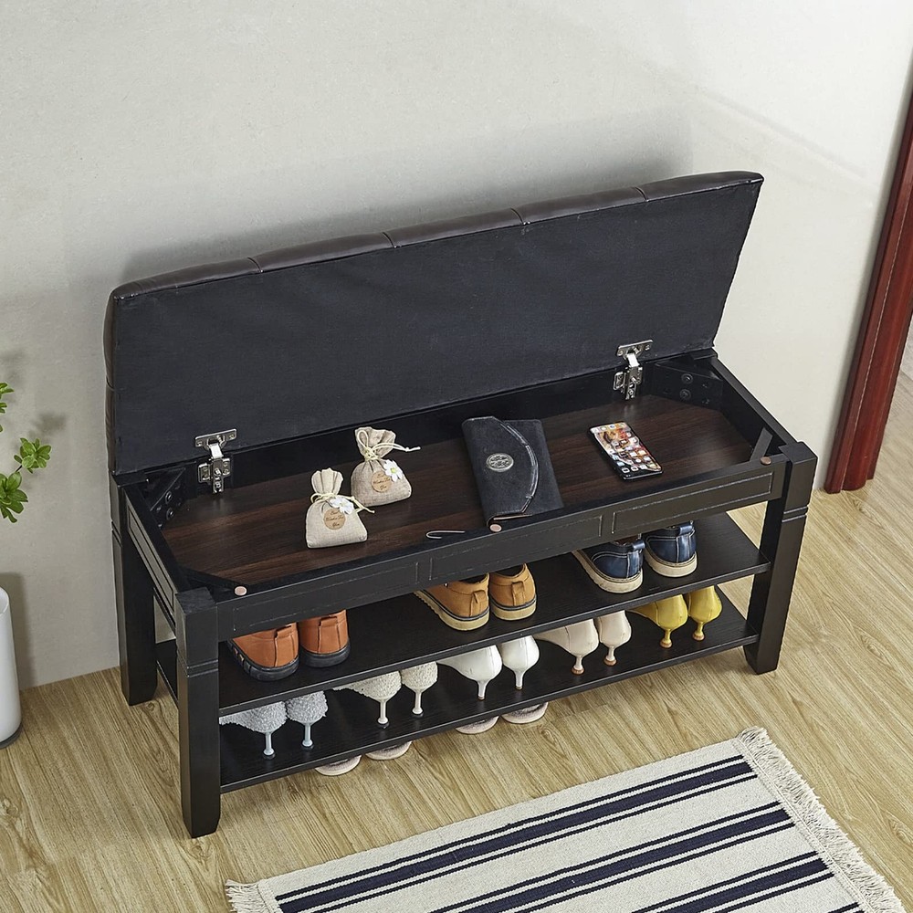 If your entrance area looks a little monotonous and shoe all over the place, this shoe bench will come in handy, create a tidy and welcoming entryway with this shoe storage bench. The LEILISI Shoe Storage Bench with cushioned seating is designed to offer the right blend of functionality and aesthetics that will keep your entryway clean and tidy. You can conveniently organize your footwear and use it as a comfortable bench to take your shoes on and off. HIGH QUALITY MATERIAL: This shoe bench is made from 100% solid rubberwood, Use the water-based coating paints, sturdy and durable, the max load capacity can up to 450 Lbs. CHEMICAL FIBER LEATHER: The upgraded model of environmentally pleasant cloth, distinct from PU leather-based, more wear-resistant and durable, like new even supposing used for a long time. ADEQUATE SPACE: Accommodate 10~12 pairs of footwear, flip storage design, anti-pinch buffer device, ample garage area to position some small gadgets (insoles, socks, shoes brush, shoe polish,etc.) EXQUISITE SHOE BENCH: Strong wooden bench isn't smooth to crack, feature simple and classical appearance design, can be use on bed room, living room, hallway, entryway, etc. EASY TO ASSEMBLY: Simply fasten the legs and board together in the order of installation, detailed instruction helps you to quick install the shoe rack in a few minutes.