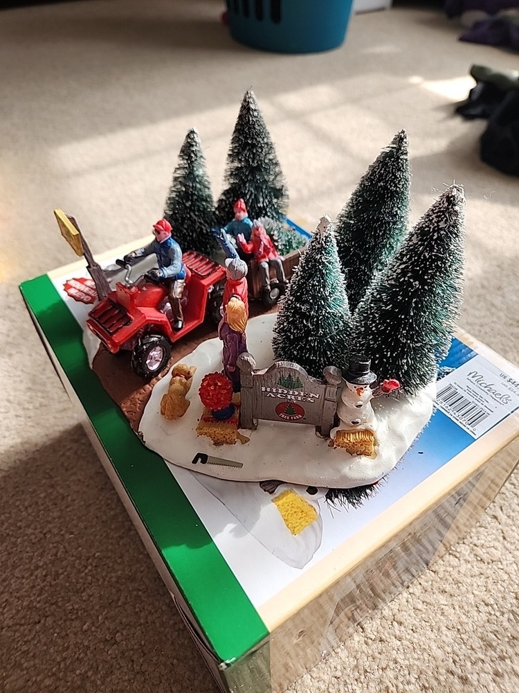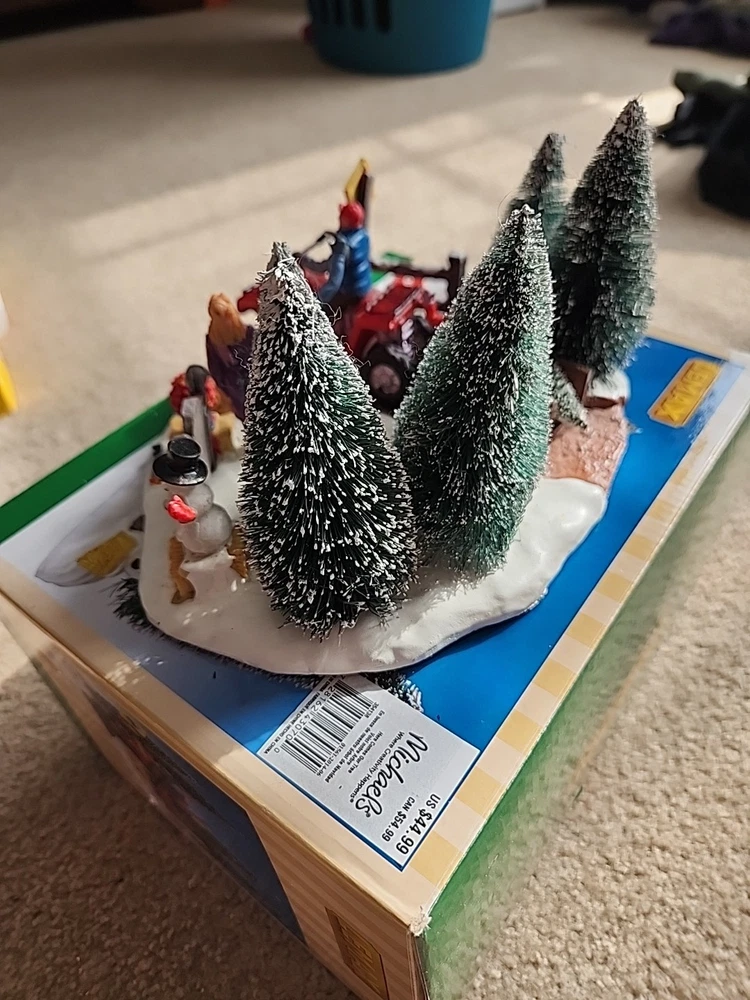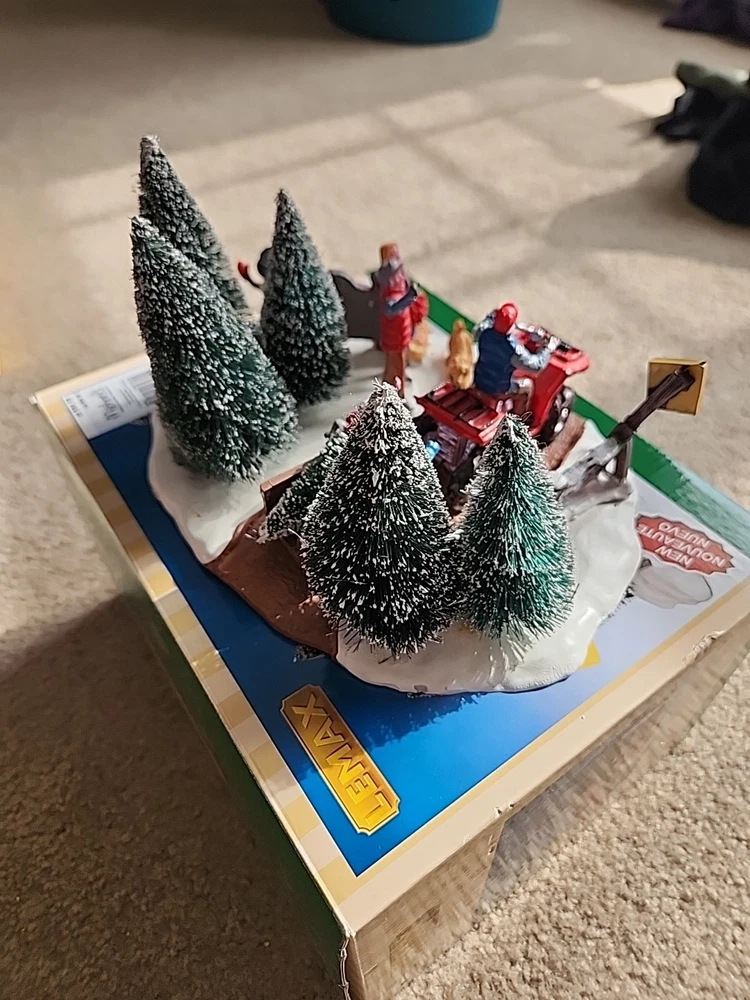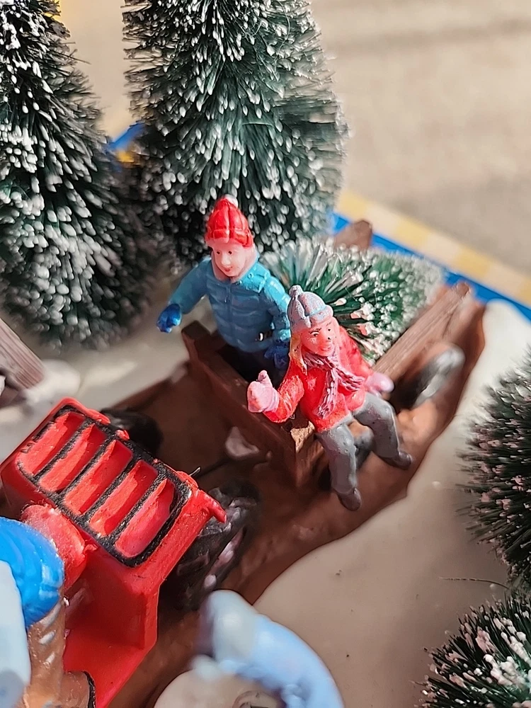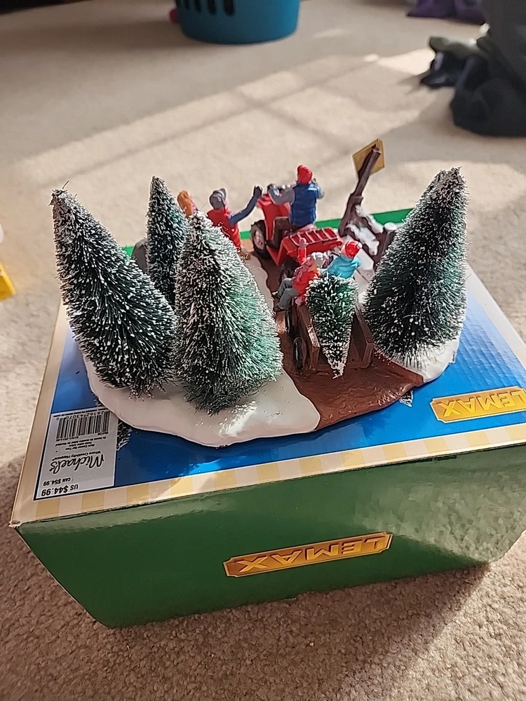 Add a touch of countryside charm to your holiday decor with the LEMAX "Here Comes Our Tree" Christmas Village Accent #43070. This medium-sized ceramic and porcelain piece from the 2014 Tree Farm Collection captures the essence of festive cheer with its intricate design and vibrant multi-color palette. Perfect for teens and adults, it can be placed in any room to bring the spirit of Christmas into your home. The accents piece features a textured finish that adds depth to the whimsical scene of a Christmas tree farm. It comes boxed, making it a great gift for collectors or a lovely treat for yourself. Easy to maintain, simply wipe with a damp cloth to keep it looking its best. Please refer to the item description and pictures for detailed information.