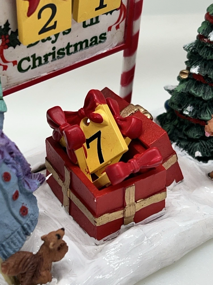 Add a touch of whimsy to your holiday decor with this charming LEMAX “Countdown to Christmas” figurine. Part of the beloved Carole Towne collection, this retired piece is sure to delight with its asymmetrical shape and playful, multicolored design. Perfect for any room, it's a petite polyresin sculpture that captures the spirit of the season with its quaint, timeless appeal. Crafted in 2012, this original figurine is a testament to LEMAX's dedication to quality and detail. It stands as a unique treasure for collectors and enthusiasts alike, ready to be displayed in your holiday village or as a standalone piece. With its matte finish and cozy Christmas scene, it brings a warm, American style to any festive setting.