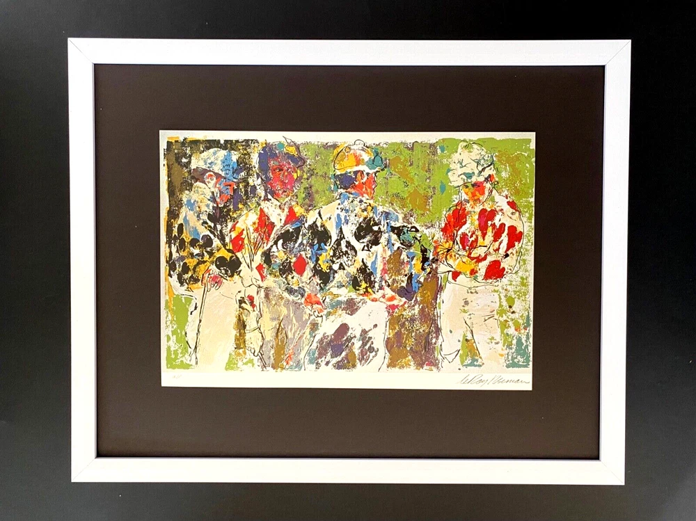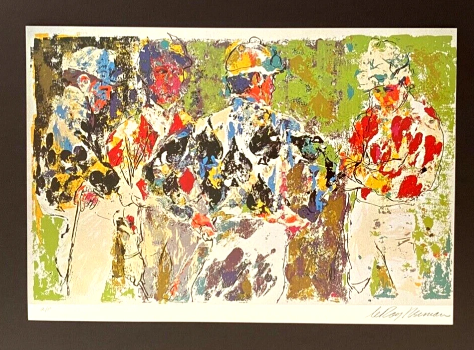 We have for Sale this LEROY NEIMAN AWESOME 1990'S PRINT ON PAPER " 4 JOCKEYS " SIGNED ON THE PLATE FULL OF COLOR PRINT SIZE OF THE PRINT: 10 X 8 in FRAME COVERS AN AREA OF 15 X 11 in MOUNTED AND FRAMED EXCELLENT CONDITIONS WILL BE CAREFULLY SHIPPED BY UPS
