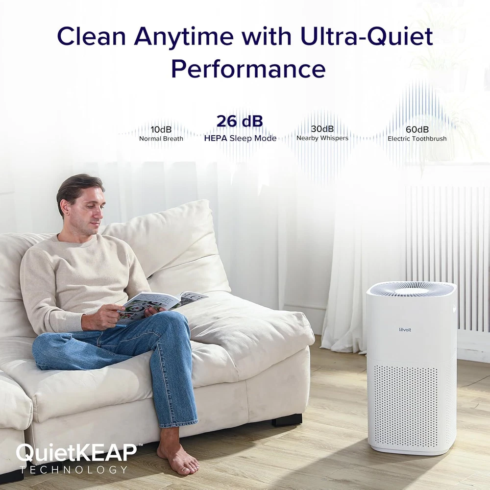 LEVOIT Air Purifiers for Home Large Room Up to 3175 Sq. Ft with Smart White Product Details Color: White Brand: LEVOIT Product Dimensions: 12.3"D x 12.3"W x 23.6"H Floor Area: 3175 Square Feet Specification Met: Energy Star Certified, FCC Certified, CARB Certified Noise Level: 26 dB Particle Retention Size: 0.3 Micron Wattage: 49 watts UPC: 810043375214 Global Trade Identification Number: 00810043375214 Manufacturer: LEVOIT Item Weight: 13.7 pounds Item model number: LAP-C601S-WUS Care instructions: Hand Wash Assembly required: No Number of pieces: 1 Batteries required: No Included Components: 1 × Smart Air Purifier 1 × 3-in-1 Original Filter (Pre-Installed) 1 × User Manual 1 × Quick Start Guide Power SourceItem Weight: DC13.7 Pounds Control MethodFilter Type: Voice3-In-1 Filtration ' : A juggernaut at purifying your air in any room. It scans the tiny contaminants and uses enhanced technology to keep your air cleaner than ever, an easy solution for whole house purification.Operating Conditions Temperature : 14°–104°F / -10°–40° C - : VortexAir Technology 3.0 enables the Core 600S-P to improve indoor air circulation and purify 635 ft² in 12 minutes or up to 3,175 ft² spaces in 60 minutes (CADR: 410 CFM / 697 m³/h). It’s great for open floor plans and high-ceiling houses -- : 3-stage filtration, including an Efficient Middle Filter, captures at least 99.97% of airborne particles 0.3 microns in size : When in Auto Mode, the Core 600S-P will automatically adjust the fan speed to protect your air quality while you rest. Levoit Original Filter is HEPA-grade while operating in Sleep Mode, as tested by an independent lab , : QuietKEAP Technology provides maximum filtration with minimal noise levels as low as 26dB to maximum 55dB. The Light Sensor turns off display lights when it detects darkness, so you can always sleep soundly : Levoit’s exclusive AirSight Plus Technology is twice as accurate as an infrared laser, detecting particles down to 0.3 microns in size. Turn on Auto Mode and the air purifier will automatically adjust the fan speed setting for you and update the display to keep you informed , : The maximum power of this air purifier is only 49W—much lower than other wide-coverage air purifiers. : At Levoit, we make your family’s health and safety our top priority. The Core 600S-P is ETL listed, as well as FCC, CARB, and Energy Star certified : Only use genuine Levoit replacement parts to maintain the best performance (Search LRF-C601-WUS). Off-brand filters are inconsistent, unreliable, and may damage the air purifier as 0.3um, this air purifier focuses on real-time home conditions - this is more than just having an air purifier! Levoit engineers designed the airpurifier's exclusive light sensor to detect the amount of light in the room toautomatically adjust air purifier settings - Set it & Forget it.Features:√ Designed for Ultra-Large Room- VortexAir Technology 3.0 enables the Core 600S to change the air in a 1588 ft² room 2x per hour√ Our air purifiers are scientifically proven to capture particles as small as 0.3 microns including pollen, dust and more. Efficient Middle filters last 3-5 months longer than standard filters.√ Equipped with a Laser Smart Sensor that detects airborne particles and self-adjusts to address the challenges of your ever-changing environment√ Built to run continuously, the AUTO mode is controlled by the Smart Sensors which detect the pollutant in the air and will automatically speed the fan up or down and change the air quality light indicator.√ Turn on Light Detection in the FREE VeSync app-the Light Seonsor will automatically adjust air purifier settings based on the amount of light in the room.√ Program your machine to turn off after pre-set intervals between 1 -12 hours.√ Safe and easy to clean with low maintenance, easy-to-replace filters. With built-in notifications when they require replacing.√ Using compatible voice control services, control your air purifier with simple, spoken instructions. Works with Alexa and Googlevoice Assistant.Warning – unauthorized replacement filters are not tested. Only authentic Levoit filters are recommendedto ensure a sealed system and proper functioning of the machine. The officialLevoit Core 600Sreplacement filter can be found by searching "###" in the search bar.Notes:We are committed to bringing customers high-quality products, a healthier lifestyle, and perfect after-sale services. Your satisfaction with our products is the priority of the team, so feel free to contact us anytime when you have questions. Our products are sold and fulfilled by Seller. If you find the product damaged or used when you receive it, please don't hesitate to contact Seller Support or us! Our customer service will respond within 24 hours.
