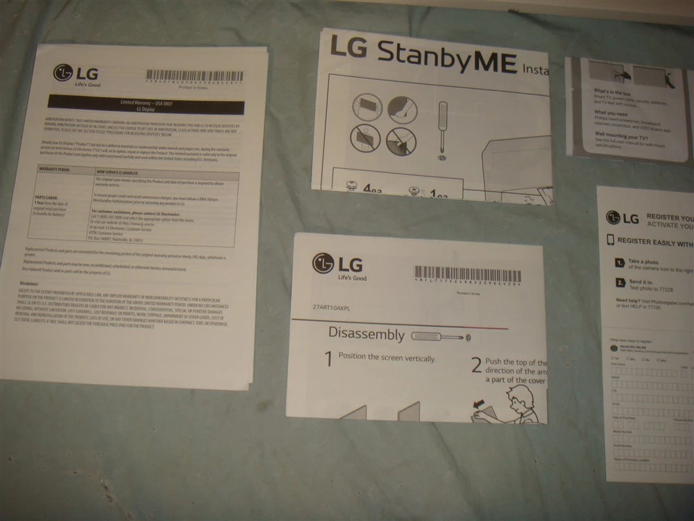 LG STANDBYME 27" LED HD SMART TOUCSHCREEN MONITOR W SWIVEL STAND 27ART10AKPL You are bidding on ONE BRAND NEW, OPEN BOX LG STANDBYME 27" LED FULL HD SMART TOUCSHCREEN MONITOR WITH SWIVEL ROTATION STAND 27ART10AKPL IN BEIGE. This is a brand new unit that was only opened to be photographed and tested prior to sale, It has never been used beyond that, and comes in original manufacturer box and packaging with all accessories and parts shown in the photos. These are normally $1000. This is your chance to save big-time so don't miss out!! About this item: Blurring the line between a television and tablet, this touch screen display frees you from power outlets and cables with a built-in battery that lets you work or play wherever you want Five wheels in the base allow you to easily roll the StanbyMe over even surfaces from room to room. A rotatable screen easily sets the touch screen monitor in portrait or landscape mode Wirelessly mirror content from your phone, tablet, or laptop via NFC—just tap your device to the NFC logo on the rear of the screen for immersive content on a larger screen Airplay2 support lets you stream, share, or mirror your favorite content from your iPhone, iPad, or Mac. Use the Home app or Siri on your Apple devices with HomeKit to control the power, inputs, and volume* Intuitive touch controls and a remote give you plenty of options to stay in control with comfort. In addition to the remote, batteries, stand, mobile device holder, power cable and quick start guide are included PLEASE READ EVERYTHING IN THE LISTING DESCRIPTION PRIOR TO BIDDING. ITEMS COME AS SHOWN IN THE PHOTOS WITH ONLY WHAT SHOWN. WE DO NOT SHIP OUTSIDE THE USA/CANADA. IF YOU LIVE OUTSIDE THE USA/CANADA AND DO NOT HAVE A CONFIRMED SHIPPING WITHIN THE US THEN WE CAN NOT SHIP TO YOU! YOU MIGHT LOOK INTO FINDING A MAIL FORWARDING PROVIDER IN THE USA AND GETTING THEIR ADDRESS ADDED AND CONFIRMED IN YOUR PAYPAL ACCOUNT! ALSO IF YOU LIVE IN CANADA UNDERSTAND THAT DUTIES AND CUSTOMS TAXES ARE COLLECTED PRIOR TO DELIVERY AND WE DON'T EVER KNOW WHAT THOSE RATES ARE OR HAVE ANY CONTROL OVER THEM AT ALL. KEEP IN MIND IF BIDDING IN CANADA YOU WILL END UP HAVING TO PAY THESE. WE'VE DISCOVERED THAT THOSE WANTING SO SAVE MONEY ON THESE FEES CAN SELF-BROKER PACKAGES LOWERING THEM SIGINIFICANTLY. YOU CAN DO A WEB SEARCH FOR DETAILS ON THIS. PLEASE NOTE THE USE OF THE UPS SHIPPING CALCULATOR UNDER THE SHIPPING TAB. THIS USES THE UPS SITE TO CALCULATE EXACT SHIPPING AMOUNTS. WE DO NOT SHIP OUTSIDE THE US/CANADA (IF YOU LIVE IN CANADA THERE IS A DROP DOWN MENU TO SWITCH THE DESTINATION FROM USA TO CANADA). PLEASE UNDERSTAND THAT THESE ARE THE ACTUAL SHIPPING PRICES PER UPS THAT WE CAN'T CONTROL. WE DO OUR BEST TO PRICE ITEMS COMPETITIVELY ENOUGH THAT THE INCREASED SHIPPING AMOUNTS DON'T MATTER BUT WE WANT YOU TO BE HAPPY WITH EVERY ASPECT OF THE SALE. PLEASE E-MAIL US IF YOU HAVE QUESTIONS PRIOR TO BIDDING SO THERE'S NO CONFUSION Powered by SixBit's eCommerce Solution