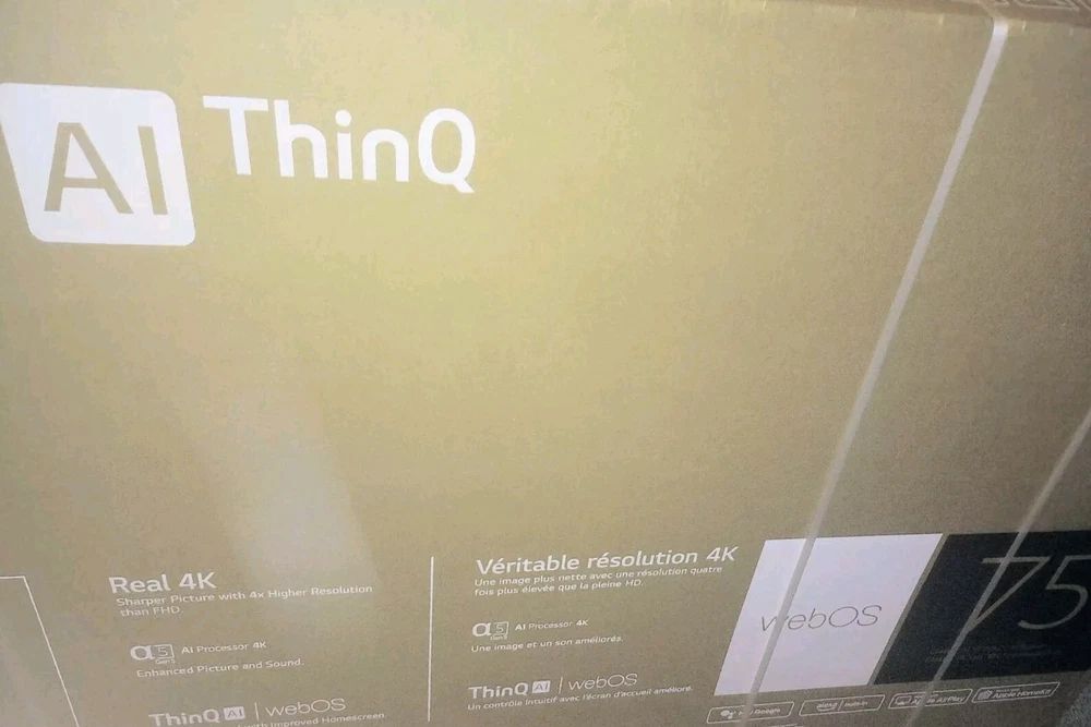 The LG 75 Inch Class QNED75 series LED 4K UHD Smart TV is a top-of-the-line television from LG's 2023 lineup. With a sleek black design and a large 75-inch screen size, it offers stunning picture quality thanks to its LED display technology and 2160p (4K) maximum resolution. This Smart TV is packed with features such as an app store, Netflix, voice interaction, and home automation control, making it a versatile entertainment hub. Additionally, it includes built-in digital tuners, various audio/video inputs, and is wall mountable for easy installation in any home setup. New in box. Just too big for my apartment.