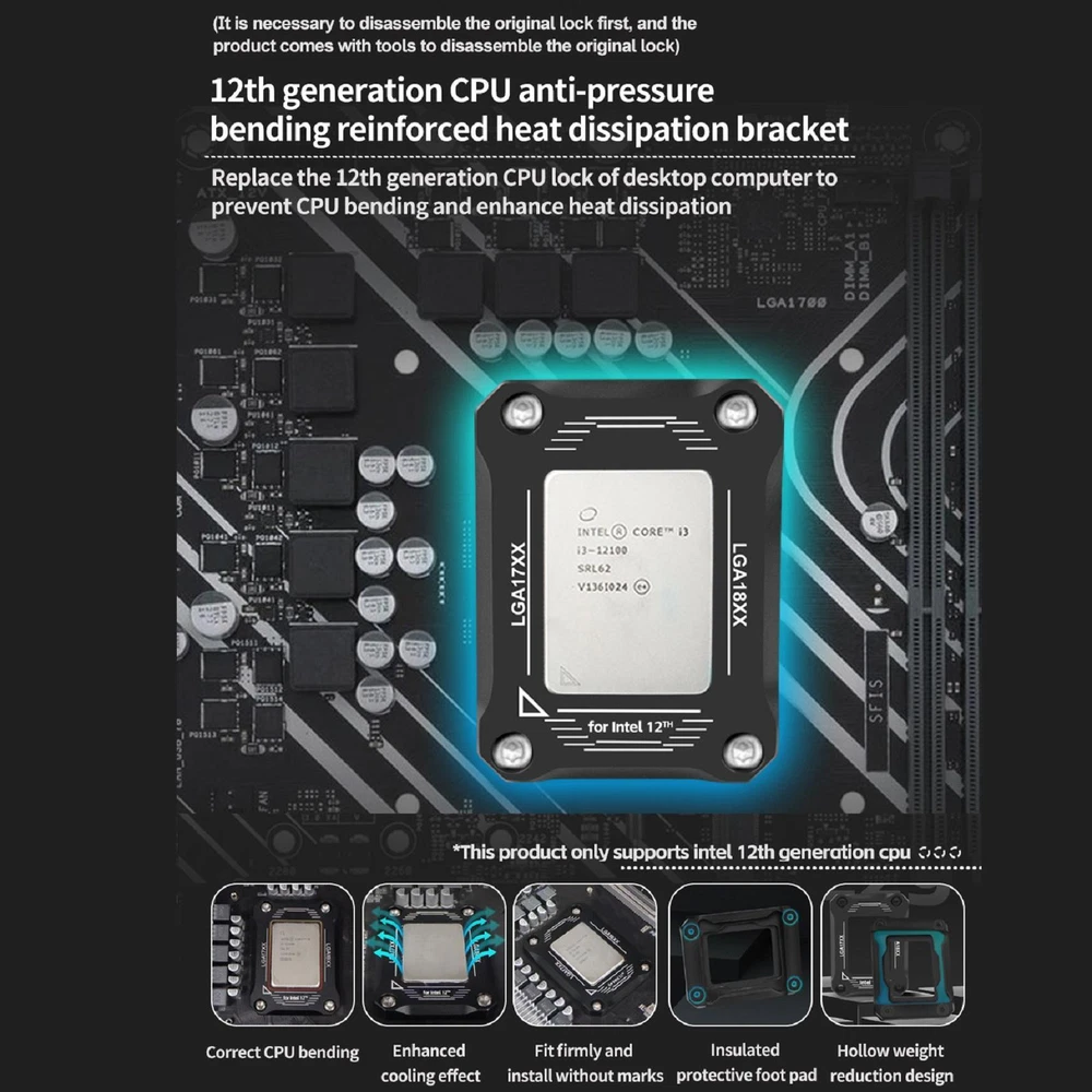 Product Description LGA1700 CPU Anti-bending Frame For Intel 12th Gen CPU Fixed Lock Buckle Bracket Aluminum Alloy 12th CPU Anti-bending Frame Desktop Computer 12-generation CPU Bracket Protection Frame Specifications: Size: 70x52.5x6MM Material: Aluminum alloy Color: Black Features: 1. CNC aluminum alloy finishing, fixed CPU with full frame, protection and heat dissipation in one step; 2. It can replace the original lock of the 12th generation CPU of the desktop computer to prevent the original lock from bending and crushing the CPU; 3. Aluminum alloy hollow weight reduction design; 4. Aluminum alloy surface process: Sandblasting anodizing; Product use: 1. It can be used to replace the 12-generation CPU lock of desktop computer; 2. Applicable to LGA-1700 and LGA-1800 series motherboards, which can be purchased according to the installation size; 3. It is used to install the 12th generation CPU to prevent the original lock from bending and crushing the CPU; Package List: 1x CPU Anti-bending Frame 1x Box wrench 1x Thermal conductive silicone grease If you have any questions, please feel free to contact us via ebay. We usually respond within 24 hours. Payment Shipping Returns Contact Us We accept all verified payments from ebay. Orders will be shipped after receiving cleared payment. Payment due within 7 days after auction ends and for buy it now listings. We ship most of our orders within 24 hours, and may up to 48 hours for. If you want faster shipping way. Please contact us before making payment. Sometimes due to problems with our transportation company system, your shipping information may be delayed to update. We recommend that you try again after 3-4 days. If you still haven't checked the shipping information, you can contact us by ebay message. Always believe we can figure things out with communication, if it comes to return, the pacakge must be intact and the same as you receive. If you have any questions, please feel free to email our service specialists 24 Hours a Day, 7 Days a Week. We will reply you ASAP. Return/refund is accepted within 30 days after the buyer receives the item. NO exchange will be accepted after 30 days from the date when the item is received. Please contact us first before returning your product!!! If you have any questions, our Customer Service staffs welcome you to email us. We strive to answer all questions and resolve any problems as quickly as possible. You can contact us 7*24, we will reply at the first time, and we will surely solve your problems. Note: 1.We try our best to reply to your emails as soon as possible, however, due to high volume of daily incoming emails and time zone difference, we may not be able to reply your emails immediately. Please allow 1 business days for us to response. If you do not receive any reply from us, please check your email ensuring your mailbox has not reached full size. 2.Due to some ISP SPAM filter settings, you may not be able to receive our replies; if you have problems receiving our emails, you may need to use a different email account to contact us. 3.Please give us the opportunity to resolve any problem. We understand the concerns and frustrations you might have, and will try our best to resolve the issues. Please email us before leaving any negative feedback or open any dispute on PayPal. 4.We care about our valued customers, and will always try to help you. So if you have any problems, please e-mail us immediately. Payment We accept all verified payments from ebay. Orders will be shipped after receiving cleared payment. Payment due within 7 days after auction ends and for buy it now listings. Shipping We ship most of our orders within 24 hours, and may up to 48 hours for. If you want faster shipping way. Please contact us before making payment. Sometimes due to problems with our transportation company system, your shipping information may be delayed to update. We recommend that you try again after 3-4 days. If you still haven't checked the shipping information, you can contact us by ebay message. Returns Always believe we can figure things out with communication, if it comes to return, the pacakge must be intact and the same as you receive. If you have any questions, please feel free to email our service specialists 24 Hours a Day, 7 Days a Week. We will reply you ASAP. Return/refund is accepted within 30 days after the buyer receives the item. NO exchange will be accepted after 30 days from the date when the item is received. Please contact us first before returning your product!!! Contact Us If you have any questions, our Customer Service staffs welcome you to email us. We strive to answer all questions and resolve any problems as quickly as possible. You can contact us 7*24, we will reply at the first time, and we will surely solve your problems. Note: 1.We try our best to reply to your emails as soon as possible, however, due to high volume of daily incoming emails and time zone difference, we may not be able to reply your emails immediately. Please allow 1 business days for us to response. If you do not receive any reply from us, please check your email ensuring your mailbox has not reached full size. 2.Due to some ISP SPAM filter settings, you may not be able to receive our replies; if you have problems receiving our emails, you may need to use a different email account to contact us. 3.Please give us the opportunity to resolve any problem. We understand the concerns and frustrations you might have, and will try our best to resolve the issues. Please email us before leaving any negative feedback or open any dispute on PayPal. 4.We care about our valued customers, and will always try to help you. So if you have any problems, please e-mail us immediately. powered by
