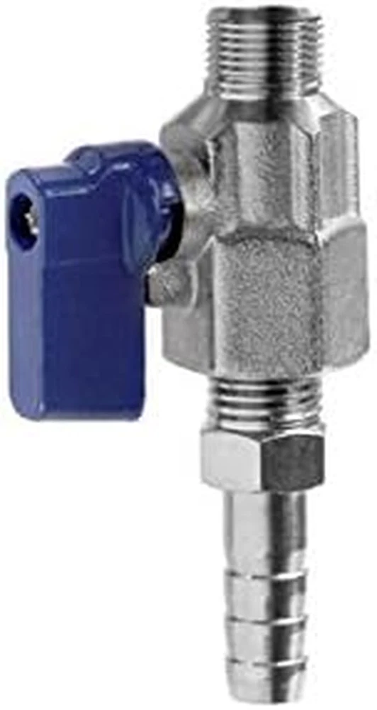 Chrome plated Brass Shut Off Valve for Beer Regulators 1/4" right hand NPT (National Pipe Threads) 5/16 hose barb outlet Manufactured in China Home brew Kits and accessories Chrome plated Brass shut off valve for beer regulators. 1/4" Right hand npt (National pipe threads). 5/16 Hose barb Outlet.