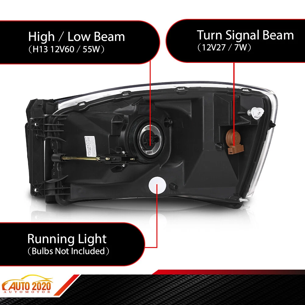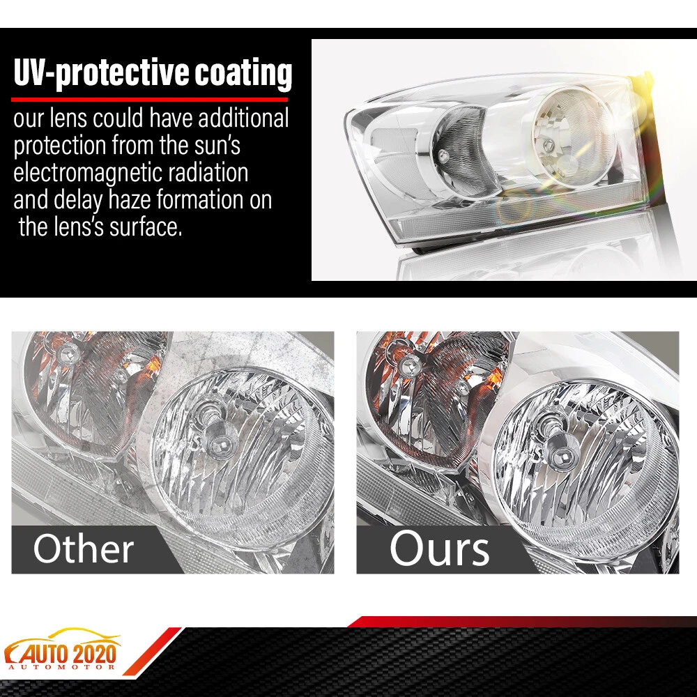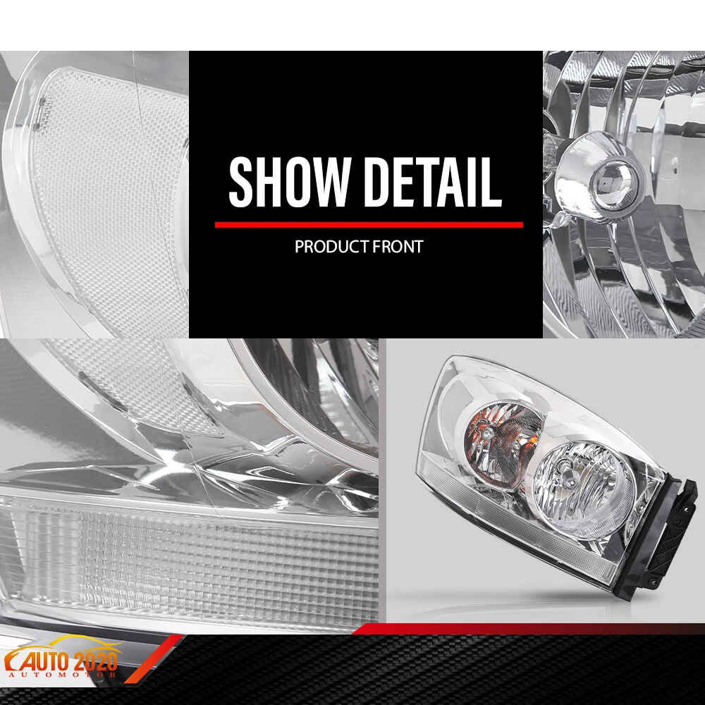 AUTOMOTO PRODUCT Fit For Dodge Ram 1500 2500 3500 w/ Chrome Bezel 2006-2009 Headlights LH & RH Product Introduction Title: Headlights Set Application: Fit For 2006-08 Dodge Ram 1500 Truck Fit For 2006-09 Dodge Ram 2500 Truck Fit For 2006-09 Dodge Ram 3500 Truck Description: 100% brand new and high quality Easy To Install and durable use. High Quality Materials and High Quality Product. Direct pricing by the factory, no price increase by the middleman. Limited life guarantee for workmanship and defects. No Installation Guide or Instruction Included. Warranty: 1 Year Quantity: 1Pair Material:PC、PP Color: Clear Lens / Chrome Housing / White Reflector Package include: 1 Pair of Headlights ( Left Driver Side & Right Passenger Side ) Note: All of the items in our shop will come to you with the tracking number If any question, pls contact us on eBay freely, we'll reply you in 2 business day. Visit shop home WELCOME to our ebay shop CONTACT US We Open 7 Days A Week ABOUT US ABOUT US: Welcome to GPLUS's eBay Store. We specialize in aftermarket automotive car parts and is the #1 industry distributor for affordable and quality products. Welcome to GPLUS's eBay Store. We specialize in aftermarket automotive car parts and is the #1 industry distributor for affordable and quality products. Welcome to GPLUS's eBay Store. We specialize in aftermarket automotive car parts and is the #1 industry distributor for affordable and quality products. SHIPPING Shipping Information All items will ship within 24 hours (Monday - Friday). Payment cleared/received on Friday will be shipped on the next business days (Monday or Tuesday). We are not responsible for carrier transit time. This information is provided by the carrier and excludes weekends and holidays. Note that transit times may vary, particularly during peak periods or in climate weather conditions, and that delivery times frames will need to be extended for any processing time frames in excess of 1-2 business days. excess of 1-2 business days. International Shipping: International buyers are responsible for possible customs fees, brokerage fees or duty fees. We would appreciate for understanding of tracking number would not be updated in between the city of departing in the U.S. and the city of destination. ATTENTION Cargo transportation Double check shipping address. We are not responsible for incorrect or undeliverable addresses. Please use Shipping & Payments tab on top of page for shipping details for your location. Transaction will be held until a full shipping amount received. Shipping address Some of the packages cannot be delivered to a PO Box. Customer is responsible to ensure PO Box address given is deliverable by the shipping company. Package will be held until a valid physical address is provided. Customer assumes shipping charges incurred in shipping to undeliverable address. Customs duties International buyers are responsible for all customs duties, taxes, and other applicable fees incurred by the country's customs/border regulations. Please contact customs for more information. We are not responsible for any changes to address after item has been shipped. RETURN please notify us within 30 days after you've received your purchased item. Return Policy: Buyers pay for return shipping fee. Items to be returned must be in resalable condition.14 Days money back, please notify us within 14 days after you've received your purchased item. If your order has been received and it is not what you ordered, or if your item has a manufacturer defect, please contact us within 14 days from delivery date. And you must contact us to request an Return Merchandise Authorization Number (RMA). No return package will be accepted without a valid RMA number. All products are covered by our warranty against defects. EMAIL click here for questions All return requests must be submitted through your eBay account. Iterms and Condition For emissions related items, please check with your local jurisdiction for emission specific requirements before purchasing. All items do not come with installation instruction unless otherwise specified. If item is questionable, please consult your local professional/mechanic before making purchase.