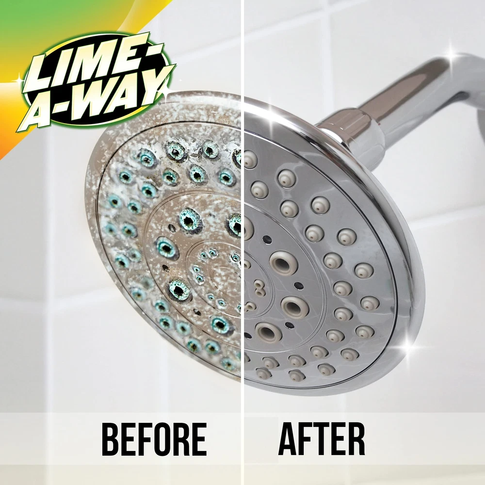 Lime-A-Way cleaner with Turbo Power destroys lime, calcium and rust stains caused by the natural minerals in your water. It effectively cleans the toughest hard water build-up so that surfaces stay cleaner for longer. Your toughest limescale will be removed in seconds without scrubbing! Good for use on: Sinks & Fixtures, Tub & Tile, and Shower & Glass. Lime-A-Way Bathroom Cleaner, 32 oz Bottle, Removes Lime Calcium Rust: Lime-A-Way cleaner with Turbo Power destroys lime, calcium and rust Removes the toughest limescale in seconds without scrubbing The Lime-A-Way spray works to remove lime, calcium and rust stains caused by the natural minerals in your water Cleans the toughest hard water build-up so that surfaces stay cleaner for longer Good for use on sinks, fixtures, tubs, tile, showers and glass Better on soap scum than the leading bathroom cleaners Stains are gone in seconds Convenient spray bottle