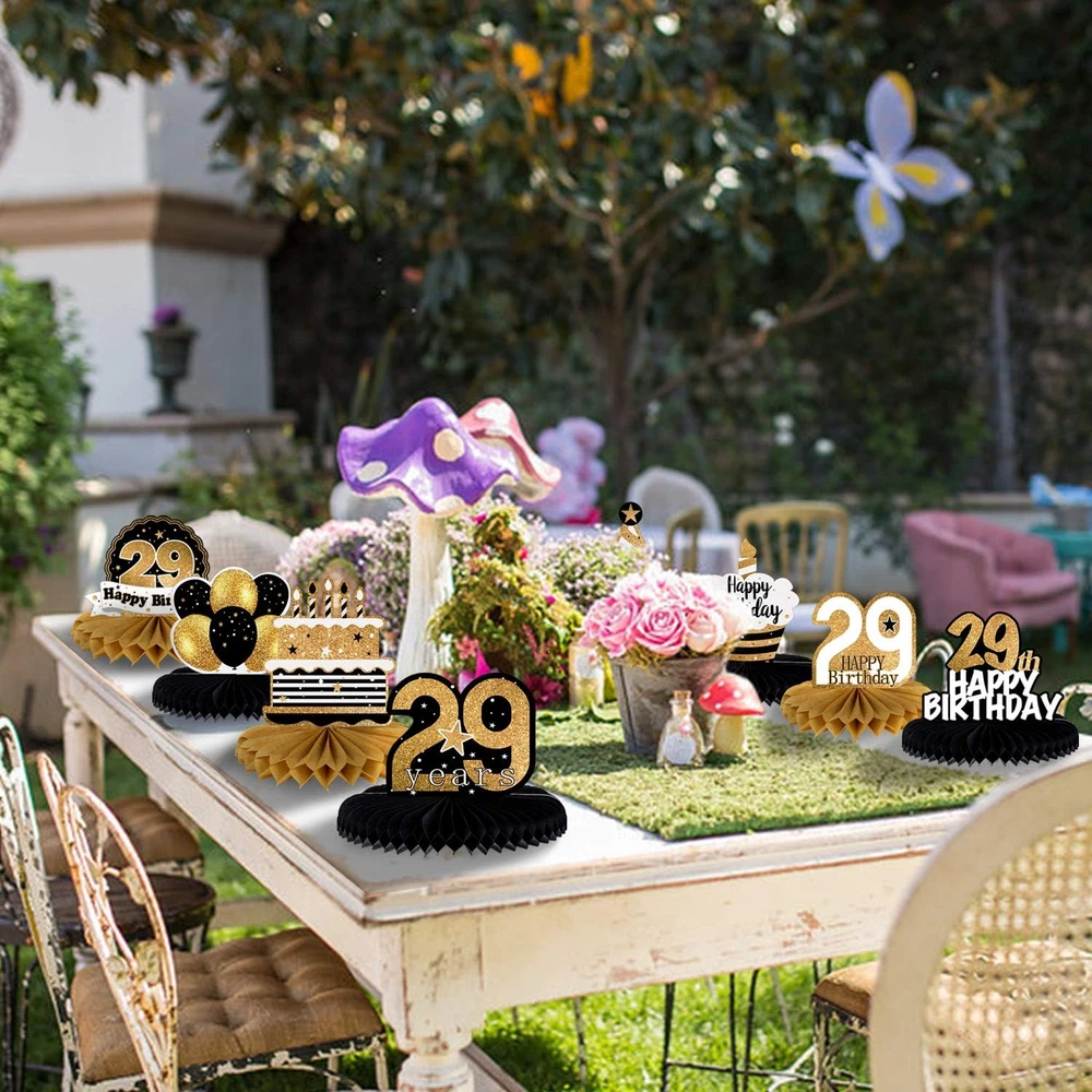 Store New Arrivals Add to Favorite View Feedback Contact LINGTEER Happy 29Th Birthday Table Honeycomb Centerpieces Perfect for Cheers to 29Th Birthday 29 Years Old Party Table Decorations Gift Sign. Description Color Gold Manufacturer LINGTEER Package Dimensions 6.81 x 6.65 x 0.83 inches; 3.84 ounces Size 29th [WHAT YOU GET] Comes with 8pcs birthday table honeycomb centerpieces. [WONDERFUL] Beatiful print details,definitely receive a lot of praise. [EASY ASSEMBLED]Honeycomb centerpiece balls, just tear out the sticker on the back of the honeycomb, unfold the honeycomb ball, and stick on the card-stock pattern, after assembling, it can stand. [GREAT ATMOSPHERE] Recommended for use in table. This is a great party sign and add more birthday atmosphere with the cheapest budget. 💰WARRANTY💰100 percent satisfaction,all decorations was carefully checked before going up to sell, If they do not meet your need, our customer service are hassle free for you to resolve your issue. If you are not satisfied with our product received, you can apply for unconditional return. Product Description Colorful celebrate your birthday party moment with our decorations set. Are you planning a perfect party? Do you want it to be just perfect? Are you looking for beautiful party decorations but don’t have the time to go look for everything? SIZE Honeycomb centerpieces about 8'' x 6''(21cm x 16cm) Beatiful print details,definitely receive a lot of praise. EASY ASSEMBLED Honeycomb centerpiece balls, just tear out the sticker on the back of the honeycomb, unfold the honeycomb ball, and stick on the card-stock pattern, after assembling, it can stand. PERFECT PARTY Recommended for use in table. This is a great party sign and add more birthday atmosphere with the cheapest budget. ABOUT US We offer the best prices around on high quality products. Our E-store includes media such as books, movies, music and games while offering electronics, toys, sporting apparel, clothing, tools, general home, garden items and more. SHIPPING We are always working hard to ensure your package arrives as soon as possible. Please understand that some factors like weather, high postal traffic, and the performance of shipping companies are outside of our control. We offer free shipping to the lower 48 states and ship within 2 business days of payment, usually sooner. We do not accept P.O. Boxes. Please provide a physical address. RETURNS We offer a 30-Day Return Policy on items which you are not completely satisfied with. You have the option for a full-refund or an exchange of the item. No returns are available on items shipped outside of the USA. PAYMENT We accept PayPal. CONTACT US This page content is yet to come Please ad us to your favorite seller and visit again later Thank You CUSTOMER SATISFACTION We try our very best to make sure every customer is completely satisfied. If there's a problem, message us! We're happy to help.
