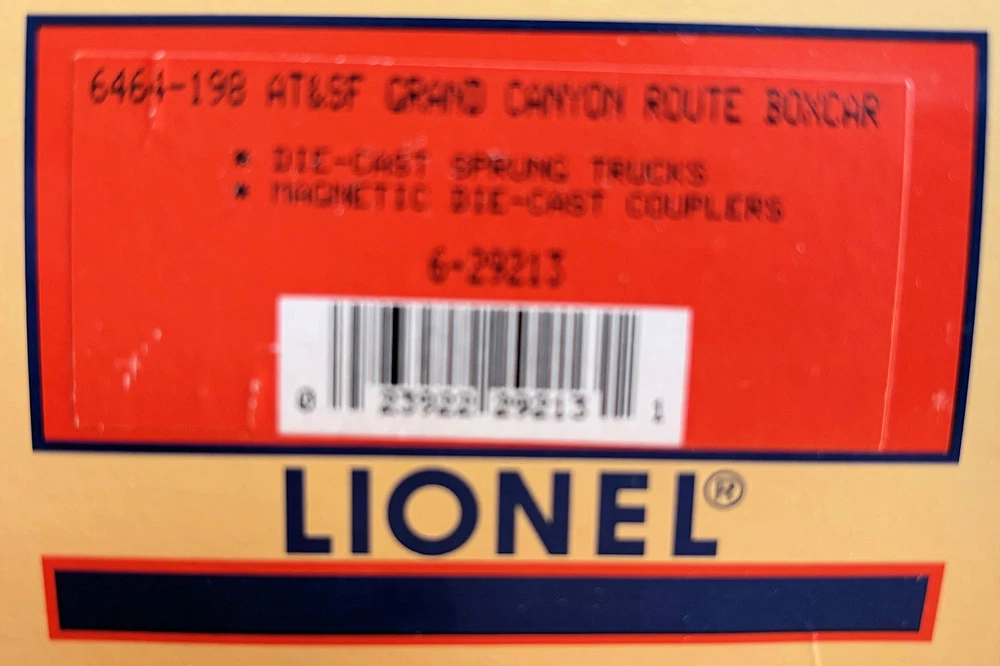 LIONEL 6-29213 6464-198 SANTA FE GRAND CANYON ROUTE RED BOXCAR ATSF 11530 NEW RT LIONEL 6-29213 6464-198 SANTA FE GRAND CANYON ROUTE RED BOXCAR ATSF 11530 NEW RTR READY-TO-RUN OVP ORIGINAL VENDOR PACKAGING Die-cast metal sprung trucks, die-cast metal operating knuckle couplers and metal wheels & axles FREE scheduling, supersized images and templates. Get Vendio Sales Manager. Make your listings stand out with FREE Vendio custom templates! FREE scheduling, supersized images and templates. Get Vendio Sales Manager. Over 100,000,000 served. Get FREE counters from Vendio today!