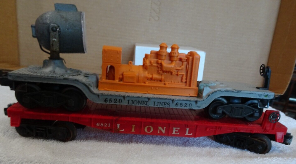 LIONEL 6821 Flatcar / 6520 Searchlight Car Nice. BOX-9 Please See Pictures As They Are The Biggest Part Of The Description