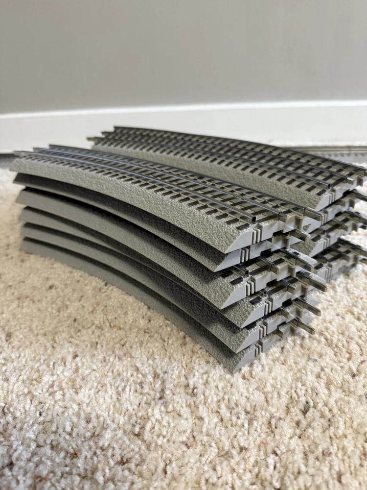 REAL SLIGHTLY USED 0-48 Curves Enhance your model railroad setup with the Lionel O Gauge Fast Track Full Circle O48 Curves pack. Ideal for creating smooth transitions and expanding your rail network, these 12 pieces are expertly crafted to complement your existing O scale layout. Constructed with a blend of durable steel and high-quality plastic, they promise longevity and resilience against wear. The track pieces feature a sleek gray color that integrates seamlessly into a variety of scenic environments. Designed for AC power operation, they are compatible with the Lionel O scale railroads and trains. Whether you're a seasoned modeler or just starting, these curves provide the reliability and flexibility needed for an engaging railway experience. SOLD AS IS NO RETURNS!!!!!!