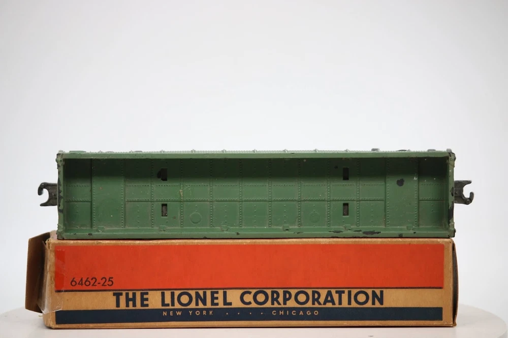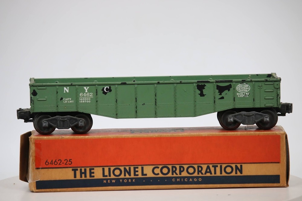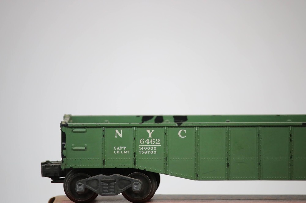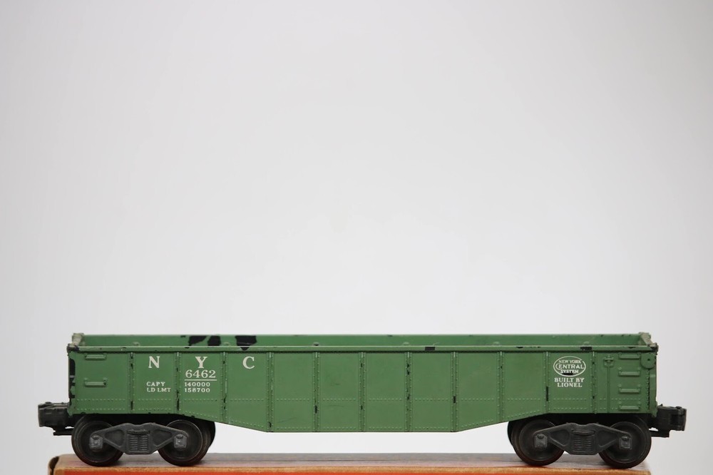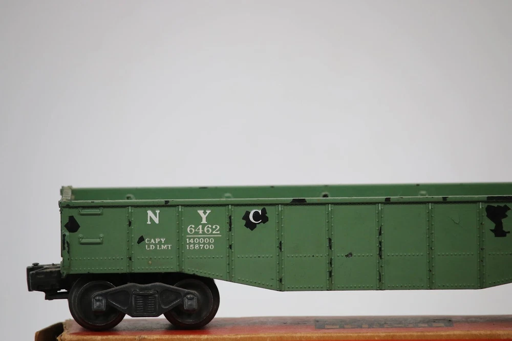LIONEL O Gauge #6462 New York Central Green Gondola Car w/ OG Box PLEASE READ BEFORE PURCHASING Condition: Please review all photos carefully for details on the item's condition. Photos are part of the description, and any notable flaws will be highlighted. Combined Shipping: If purchasing multiple items, request a revised invoice before paying to ensure accurate combined shipping costs. Lighting Disclaimer: Photos are taken under bright lighting to highlight details, which may cause slight variations in color or hue depending on your lighting. If you need additional photos (e.g., in natural light) or more details, please ask before purchasing. As-Is Items: Items come AS-IS. The way they appear in our pictures is how the Item will arrive to you. What's Included: Only the items shown in the photos and described in the listing are included in the purchase. We strive to describe items thoroughly and provide clear photos. If you have any questions or concerns not addressed in the listing, feel free to ask before purchasing. Thank you for shopping with us!