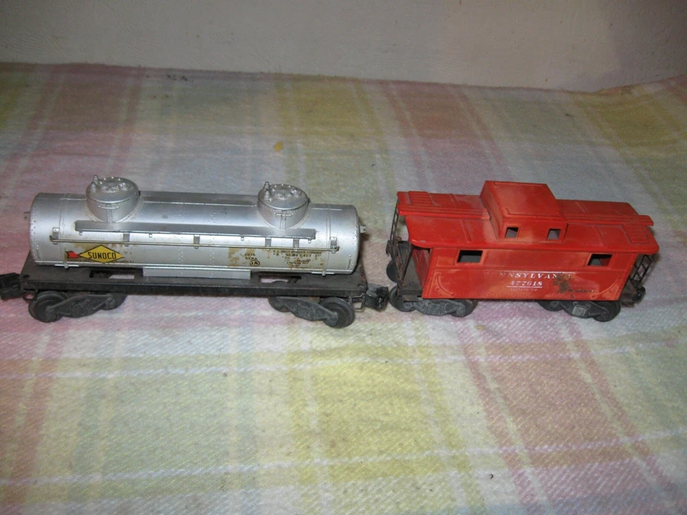 For sale is a Lionel Sunoco Tanker # 2465 and a Lionel Red Metal Caboose #2472. Both looks to be in good condition but both needs replacement decals and a good cleaning. Both have their steps at all 4 corners. Both were made in the 1940s. Both I believe would be great items to restore. I have listed several pictures so look at them closely as they are an important part of the description. Shipping by USPS Priority Mail to the lower 48 states only.