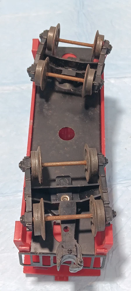 The Unmarked Caboose No. 6167 was available in 1963 and 1964 and was manufactured in various shades of plastic. Issued as a component of various starter sets during these years, they would also be offered in numerous uncataloged sets. These cars are difficult to catalog because the boxes are non-existant, however, attempts have been made to catalog these by their mold number. Some of the RED cabooses use mold 6059-2 while some of the YELLOW ones use mold 6167-52. The most collectable car of this type is the D Variation that uses a Die 4 body. All of these came with either AAR or arch-bar trucks and there are five known variants of this unmarked caboose: Variation A: Unpainted RED body whose chassis does not have handrails and has one solid coupler. Listed in the Lionel Service Manual and Cataloged as 6167-25. Variation B: Cataloged as 6167-125 in the Lionel Service Manual with one operating disc coupler and one solid coupler and has a RED body. Variation C: Unpainted YELLOW body that has one solid coupler. Listed in the Lionel Service Manual and Cataloged as 6167-50. Variation D: OLIVE DRAB body whose chassis does not have handrails and has one solid coupler. Known to have been used as a component for the uncataloged Firestone Tire & Rubber Company set No. 19338 . Variation E: Unpainted BROWN body that uses a Die 4 and was issued uncataloged. Estate find, items has been in storage for decades