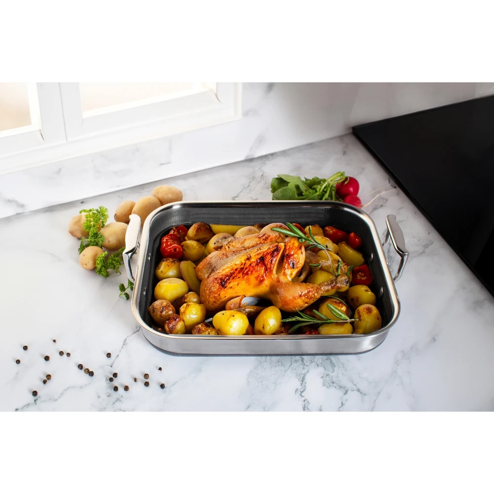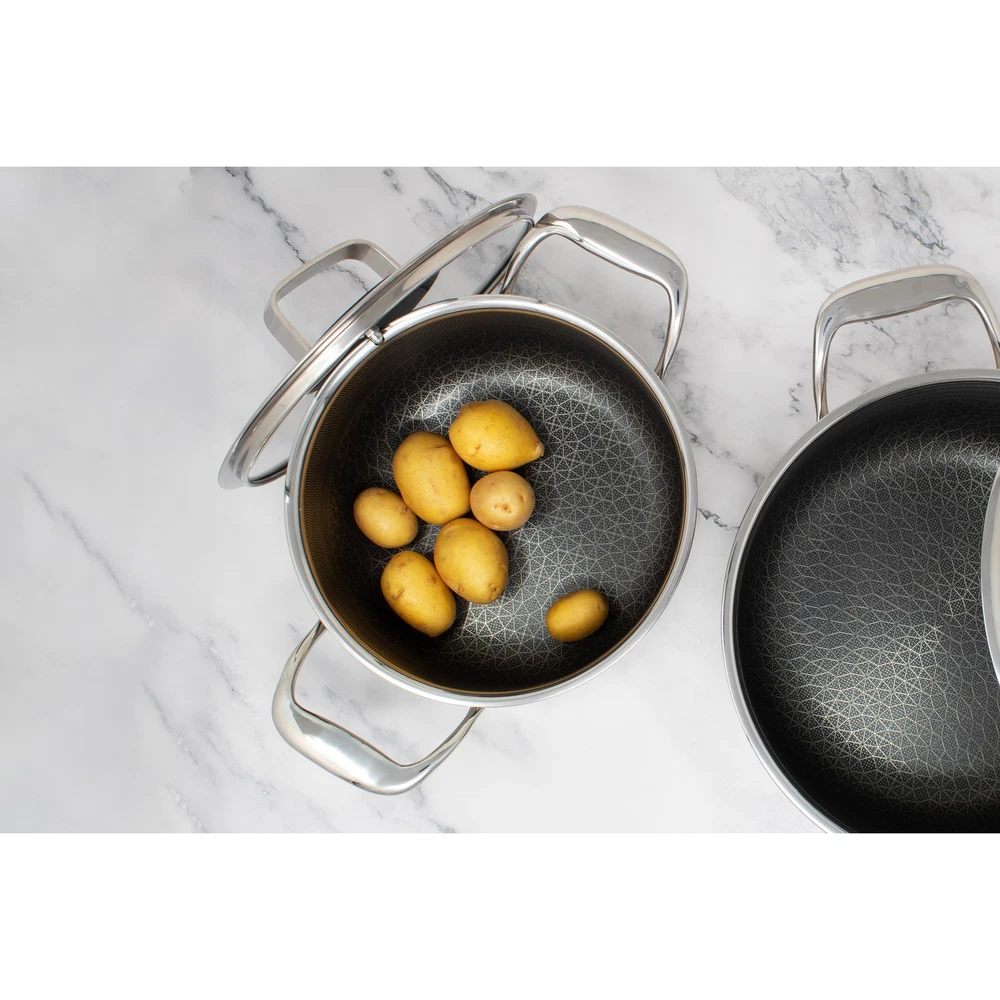 Transform your kitchen with the DiamondClad Hybrid 10-Piece Cookware Set, a premium collection designed to meet all your culinary needs. This versatile set includes a 3QT Pot with Lid, 6QT Pot with Lid, 5QT Sauté Pan with Lid, 1.5QT Sauce Pan with Lid, and a Roaster with Basketeverything you need to create a variety of dishes with ease.Built with advanced DiamondClad technology, each piece in this cookware set features a durable nonstick surface that ensures effortless food release and even heating. The included lids help lock in moisture and flavor, making every meal you cook more delicious. From simmering and sautéing to roasting and more, this cookware set is perfect for both everyday cooking and special occasions. 10-Piece Set: Includes 3QT Pot with Lid, 6QT Pot with Lid, 5QT Sauté Free Shipping Over $49.99* Details LIVWELL DiamondClad 10pc Hybrid Nonstick Stainless Steel Cookware Set Product Description: Transform your kitchen with the DiamondClad Hybrid 10-Piece Cookware Set, a premium collection designed to meet all your culinary needs. This versatile set includes a 3QT Pot with Lid, 6QT Pot with Lid, 5QT Sauté Pan with Lid, 1.5QT Sauce Pan with Lid, and a Roaster with Basketeverything you need to create a variety of dishes with ease. Built with advanced DiamondClad technology, each piece in this cookware set features a durable nonstick surface that ensures effortless food release and even heating. The included lids help lock in moisture and flavor, making every meal you cook more delicious. From simmering and sautéing to roasting and more, this cookware set is perfect for both everyday cooking and special occasions. 10-Piece Set Includes 3QT Pot with Lid, 6QT Pot with Lid, 5QT Sauté Pan with Lid, 1.5QT Sauce Pan with Lid, and Roaster with Basket. DiamondClad Nonstick Surface Provides exceptional durability and easy cleanup. Even Heat Distribution Ensures consistent cooking results every time. Moisture-Locking Lids Maintain the flavor and moisture in your dishes. Versatile Use Ideal for simmering, sautéing, roasting, and more.