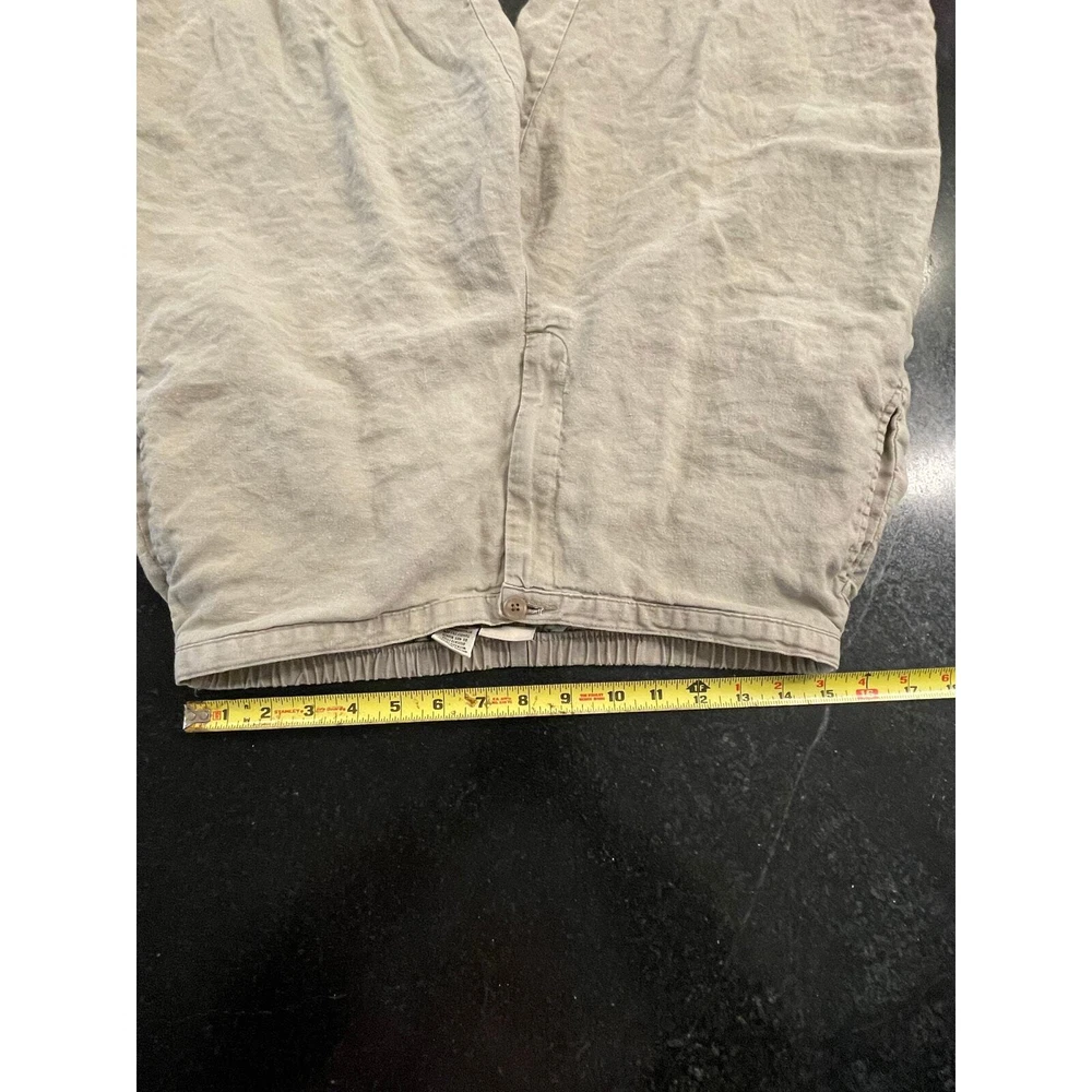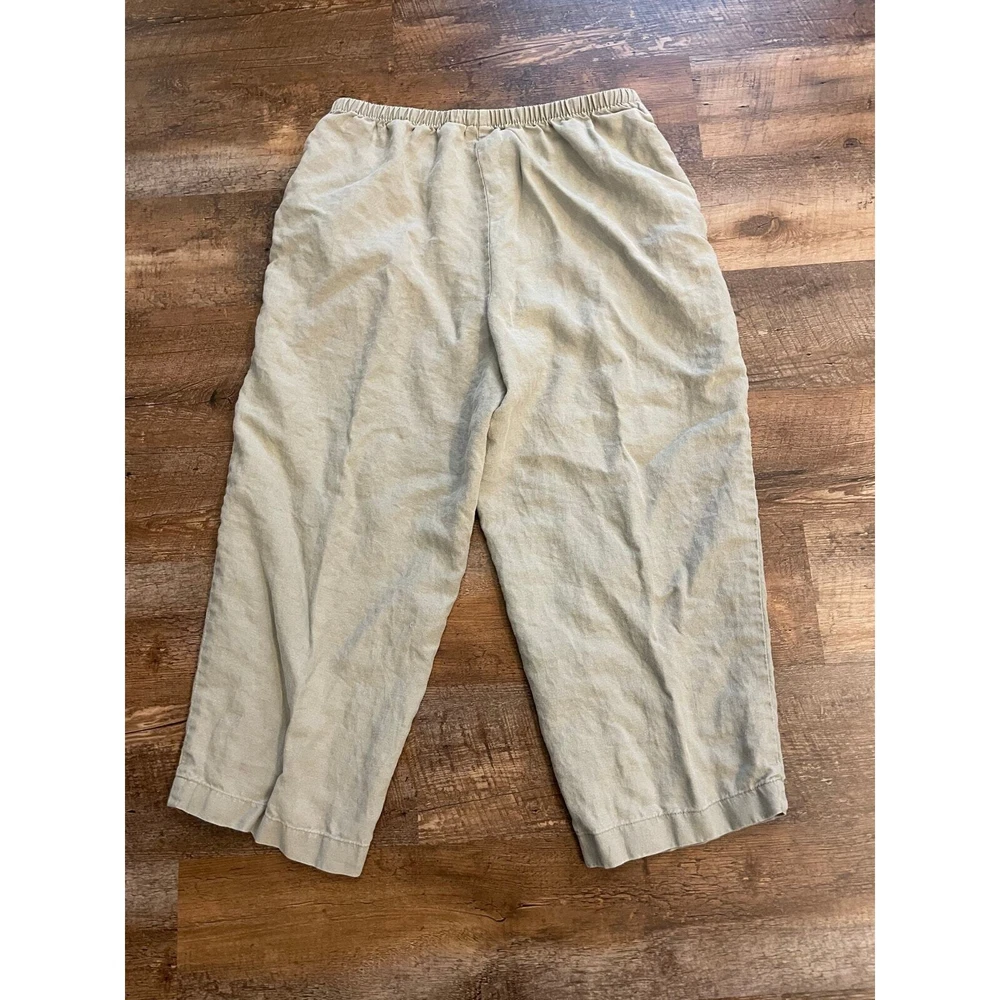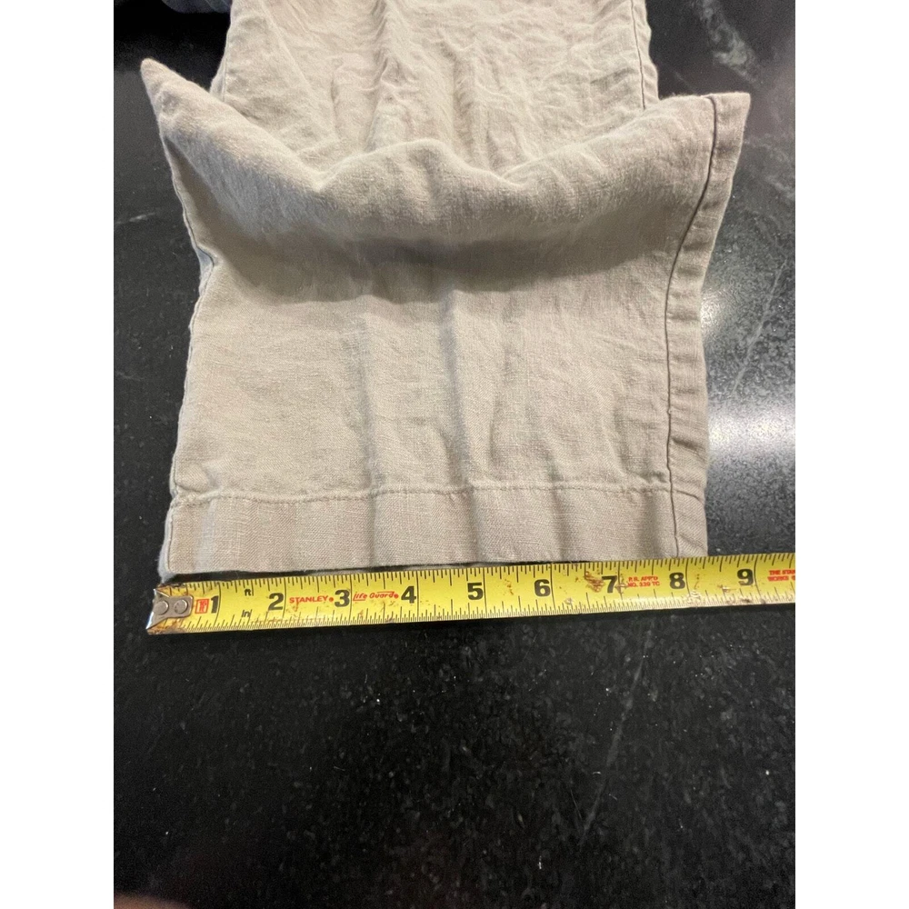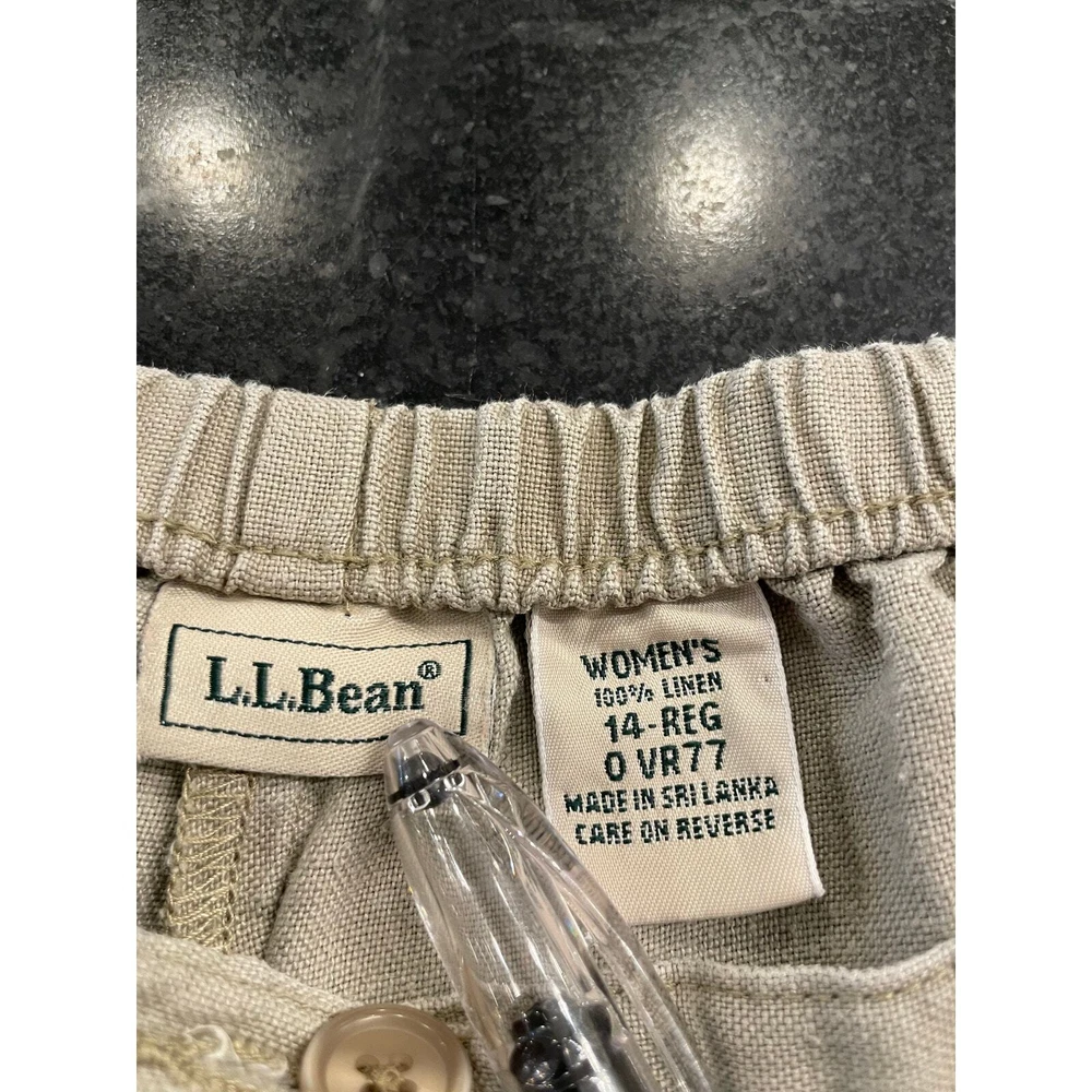 Naturally cool and comfortable. Linen lasts forever when taken care of properly. these pull on pants are soft, light, breezy and incredibly easygoing. Forgive the wrinkles, these press beautifully but I wanted to do a fresh wash on them before packing them away for sale. In excellent condition. and if you know the L.L. Bean line then you know these are high quality pants. Pull on pant with elastic waist. size 14R. Has front pockets. flowy fit to the legs. inseam:@22" rise: @12" I actually like them unpressed for a more BOHO look, but pressing them makes them look super sharp. unpressed make for a great laid back vacation look.