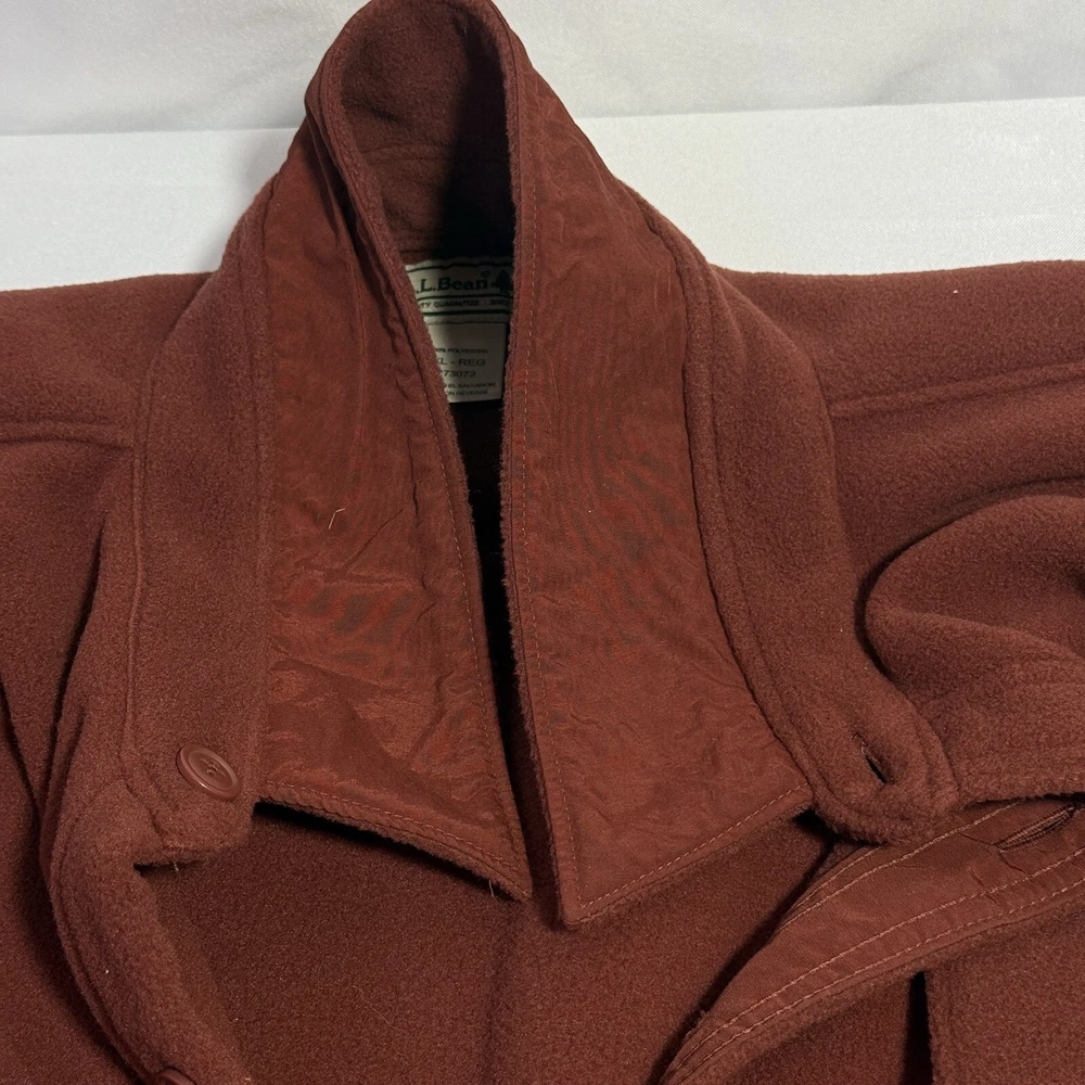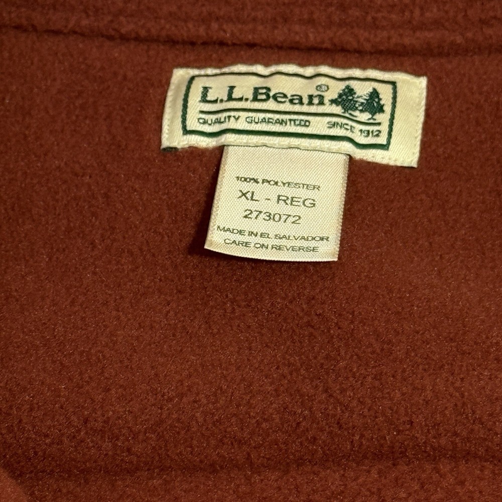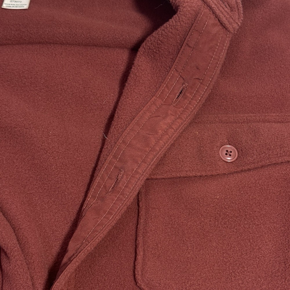 Elevate your casual wardrobe with this vintage LL Bean fleece shirt jacket. The plush and fuzzy 90s grunge style shacket is perfect for travel and outdoor occasions. It features a solid burgundy color with a button-down collar and button-up closure. The long sleeve shirt has pockets accents and a regular fit. This men's XL size shirt is made of machine washable polyester fleece fabric, making it easy to care for. The garment is perfect for winter and fall seasons. This outdoor-themed shirt is a great addition to your wardrobe. Armpit to armpit 28”. Shoulder to bottom 32”. Sleeve length 23”. Measurements are approximate. In very good condition