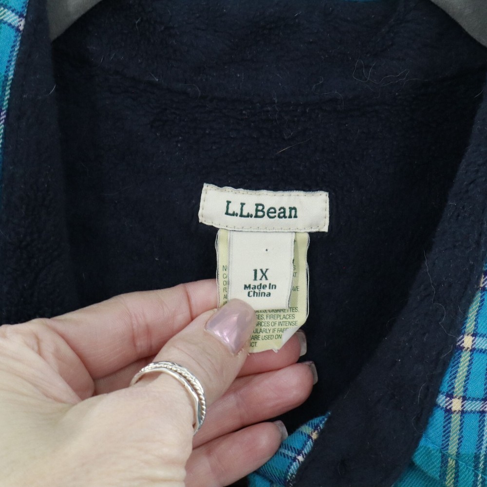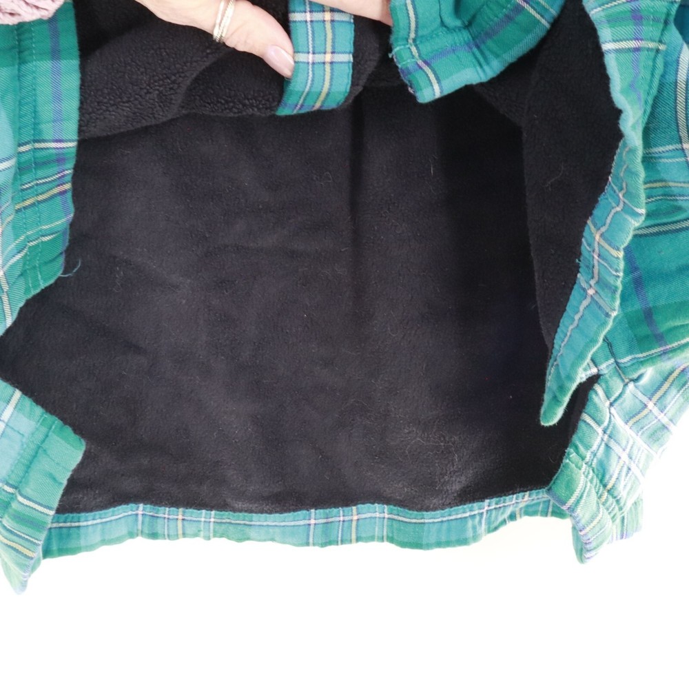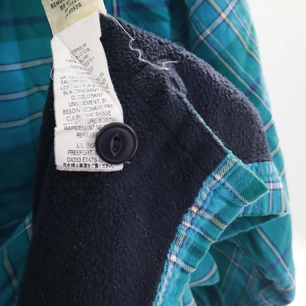 This shacket is the love child of a flannel shirt and a fleece jacket. With its cozy fleece lining, this L.L. Bean creation keeps you warm whether you're hiking, camping, or just avoiding doing the dishes. The green plaid pattern adds a splash of rugged charm. • Button-up front with black buttons • Single chest pocket for small essentials • Long sleeves with buttoned cuffs • Made in China Features: rugged, outdoors, flannel, fleece lined, shacket, camping, hiking, classic, timeless, gorpcore Size: Mens 1X Condition: Pre-Owned Like New Excellent pre-owned condition. See photos for more details.