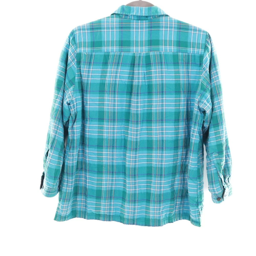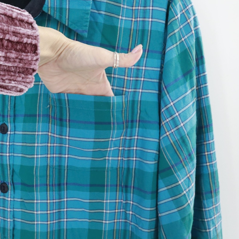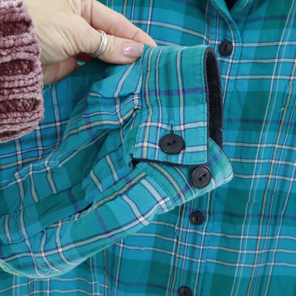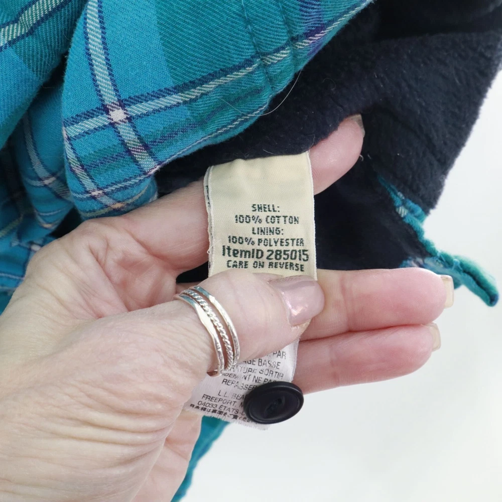 This shacket is the love child of a flannel shirt and a fleece jacket. With its cozy fleece lining, this L.L. Bean creation keeps you warm whether you're hiking, camping, or just avoiding doing the dishes. The green plaid pattern adds a splash of rugged charm. • Button-up front with black buttons • Single chest pocket for small essentials • Long sleeves with buttoned cuffs • Made in China Features: rugged, outdoors, flannel, fleece lined, shacket, camping, hiking, classic, timeless, gorpcore Size: Mens 1X Condition: Pre-Owned Like New Excellent pre-owned condition. See photos for more details.