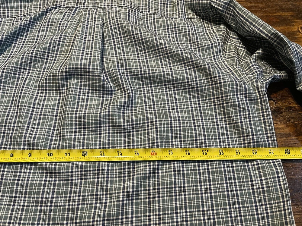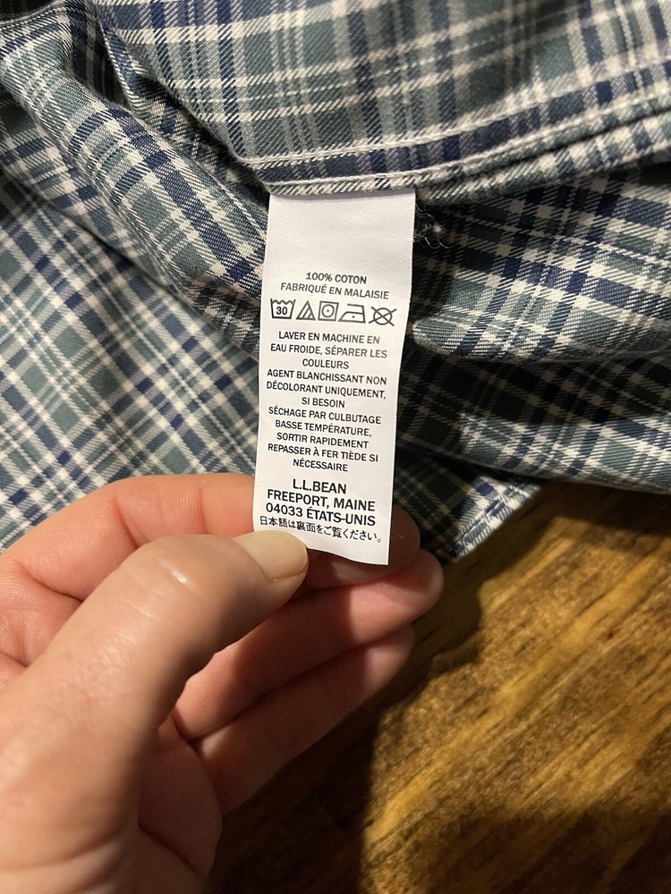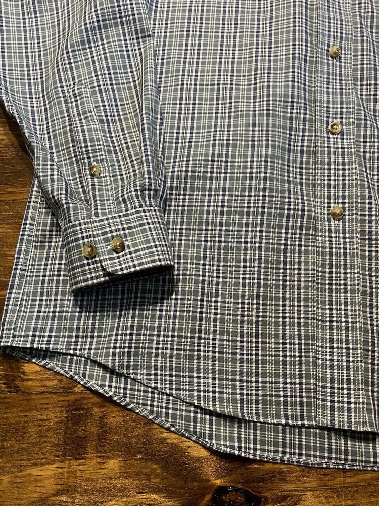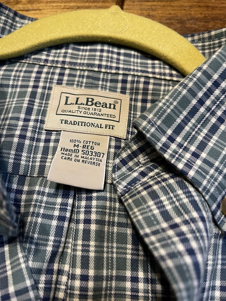 L.L. Bean Traditional Fit L/S Button Down Shirt. 100% Cotton. Green/Navy/Cream Plaid Check. Size Med.