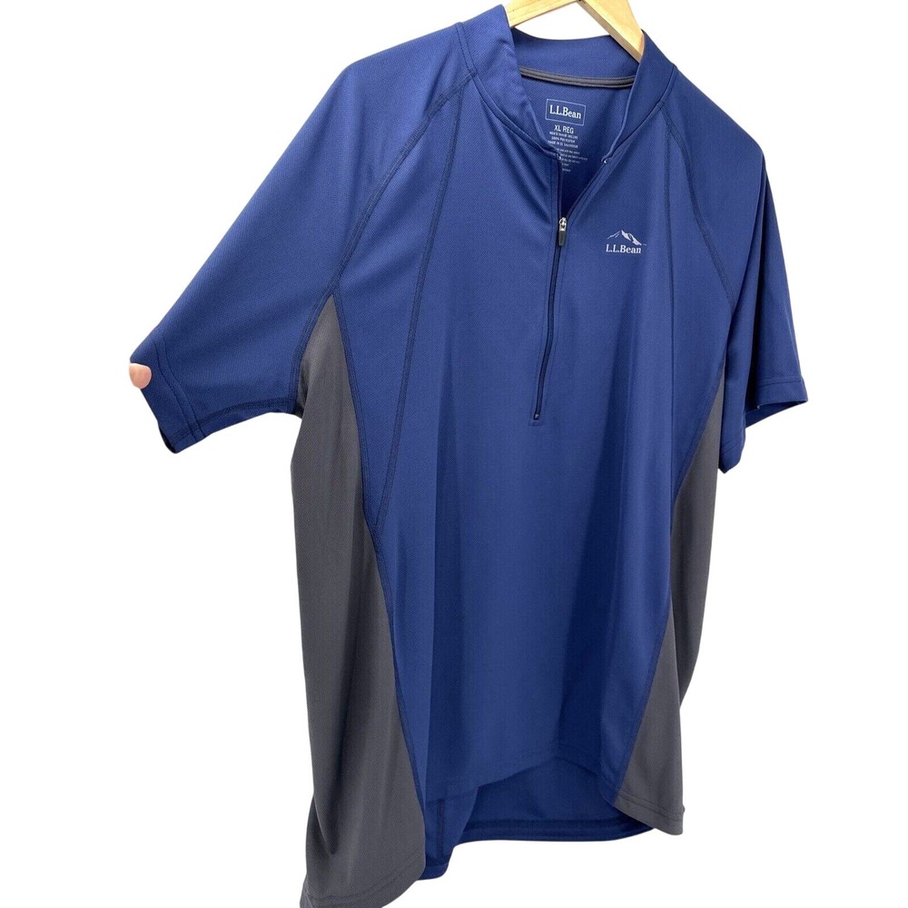 LL Bean Mens XL Activewear Jersey Blue Gray Short Sleeve 1/4 Zip Running Cycling Very good condition, see all pictures for views. * Pit to pit: 25" * Shoulder to hem: 28" Front 33" Back Ships out same day or next open postal day. Thank you for your purchase, we appreciate you!