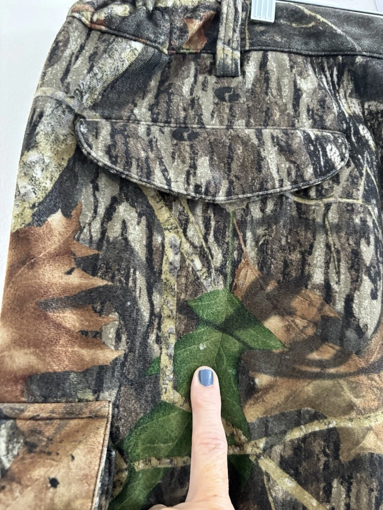 Ll bean men’s camouflage hunting outdoor pants full zip size 46x28 There is wear around the zippers, one small hole by back pocket, see pictures