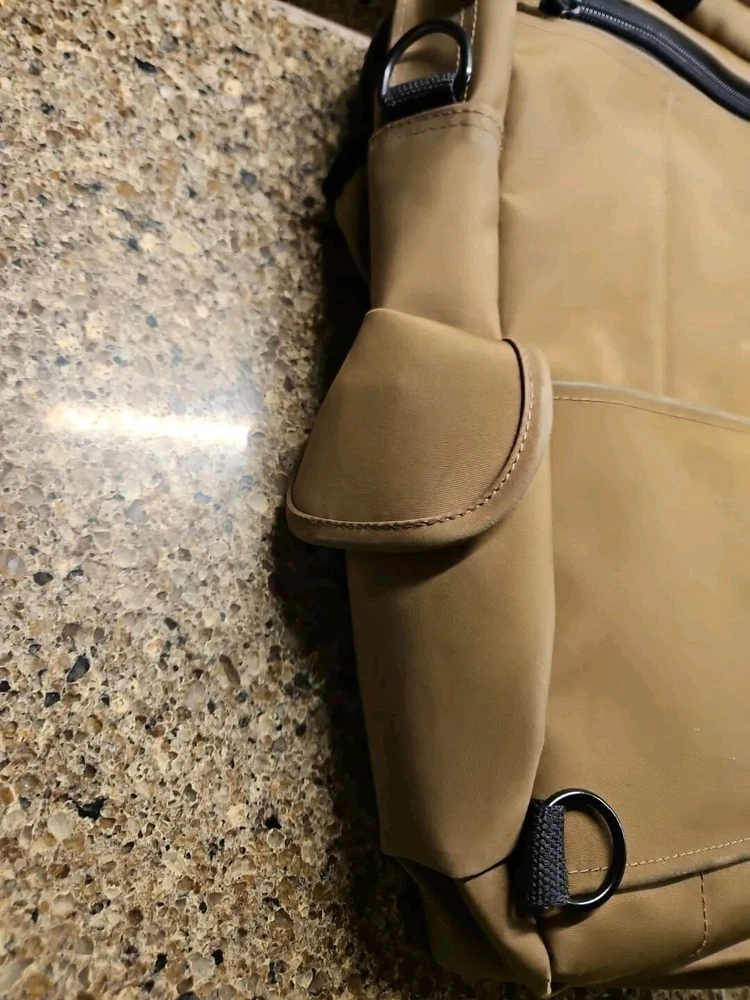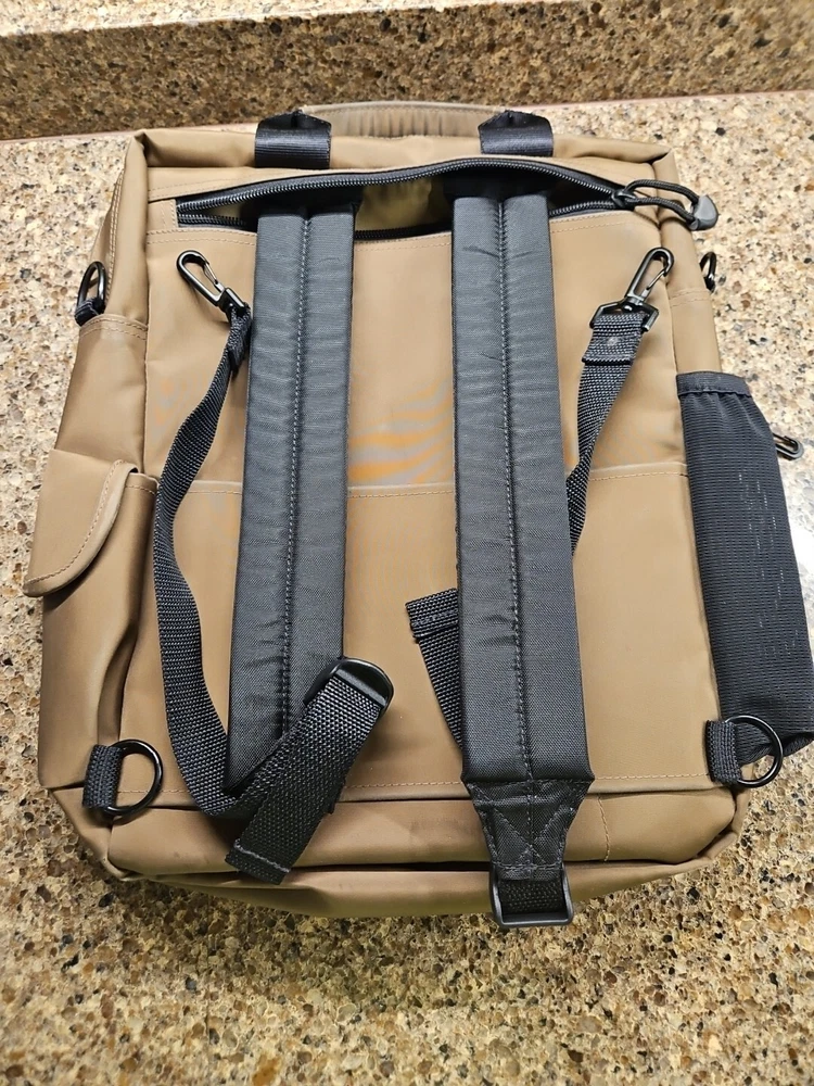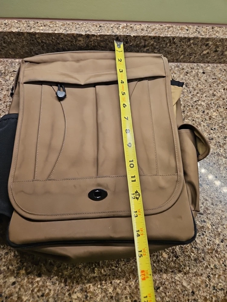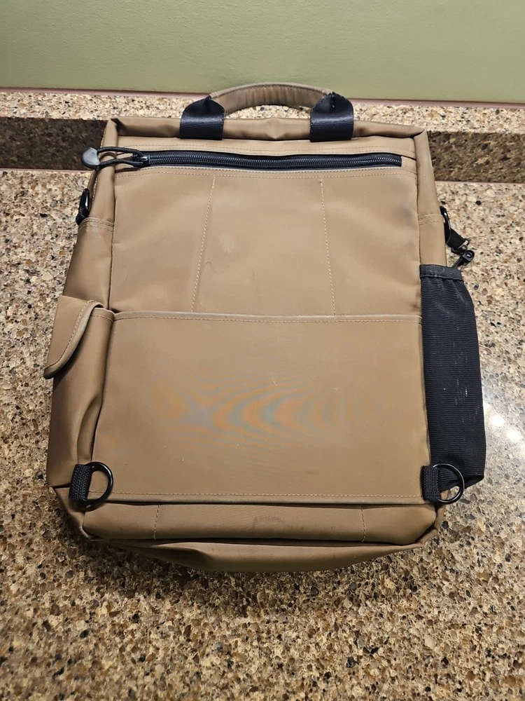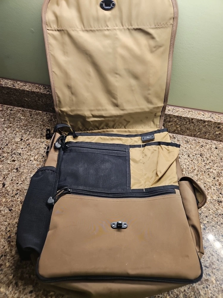 LL Bean Traveler Nylon Messenger Back Pack Travel Bag Khaki Brown